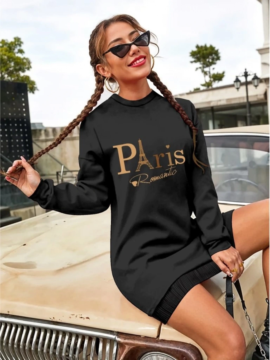 Kadın Uzun Kollu Bisiklet Yaka Yazılı Kısa Viskon Iki Iplik Elbise
