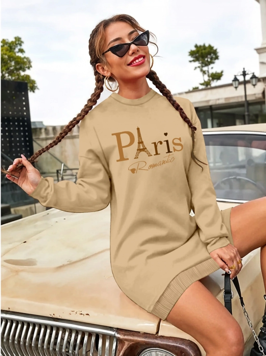 Kadın Uzun Kollu Bisiklet Yaka Yazılı Kısa Viskon Iki Iplik Elbise