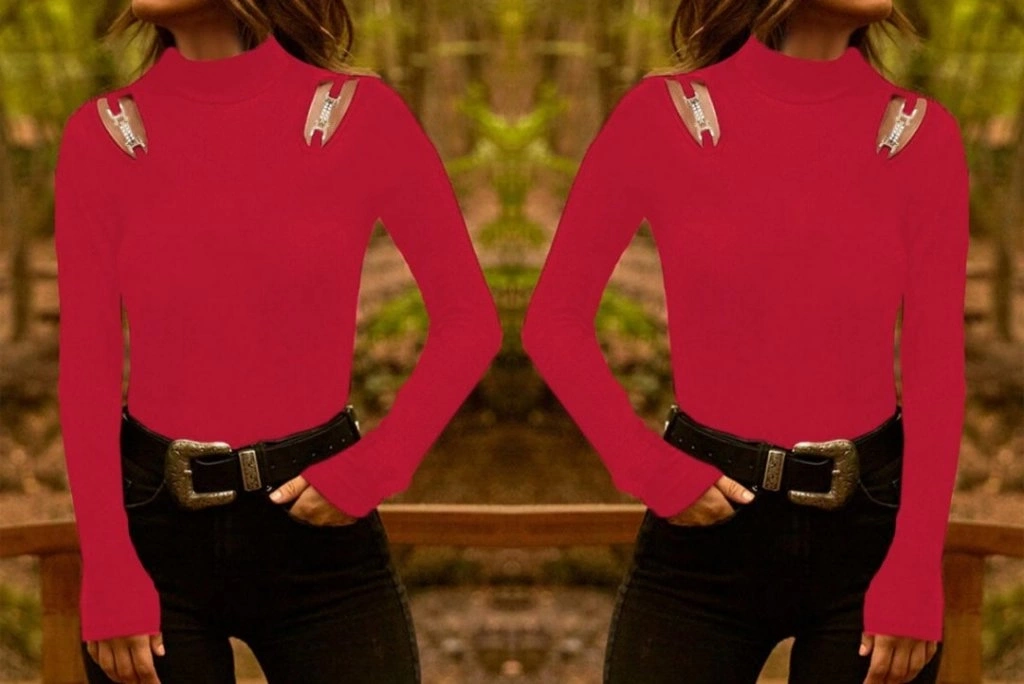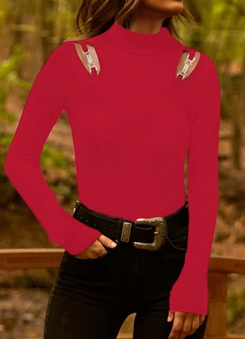 Kadın Uzun Kollu Omuz Dekolte Ve Aksesuar Detay Viskon Bluz