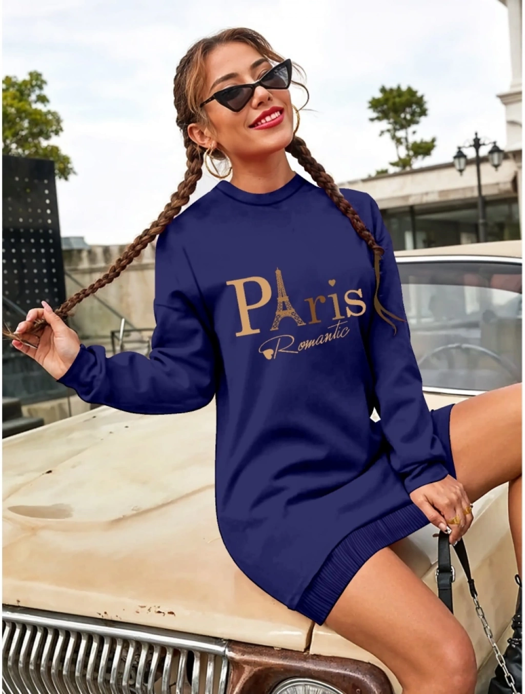 Kadın Uzun Kollu Bisiklet Yaka Yazılı Kısa Viskon Iki Iplik Elbise