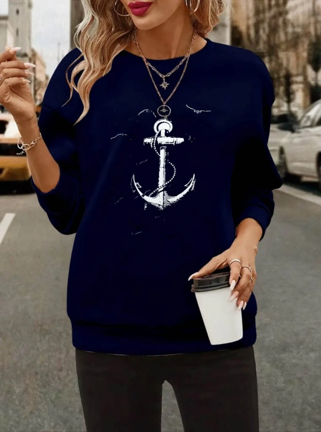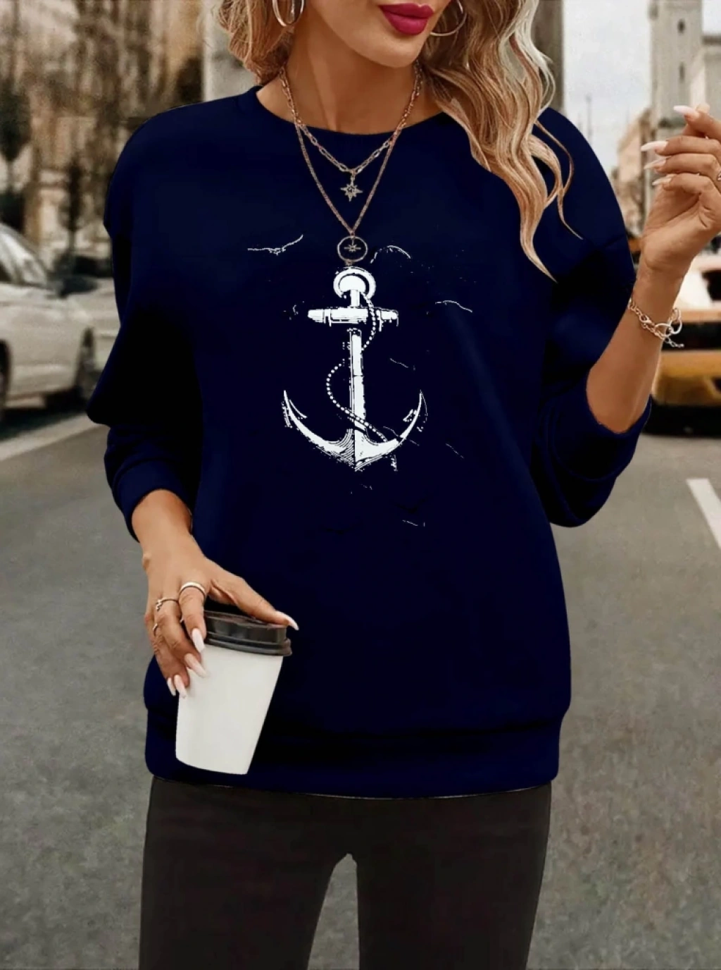 Kadın Uzun Kollu Bisiklet Yaka Desenli Viskon Iki Iplik Bluz