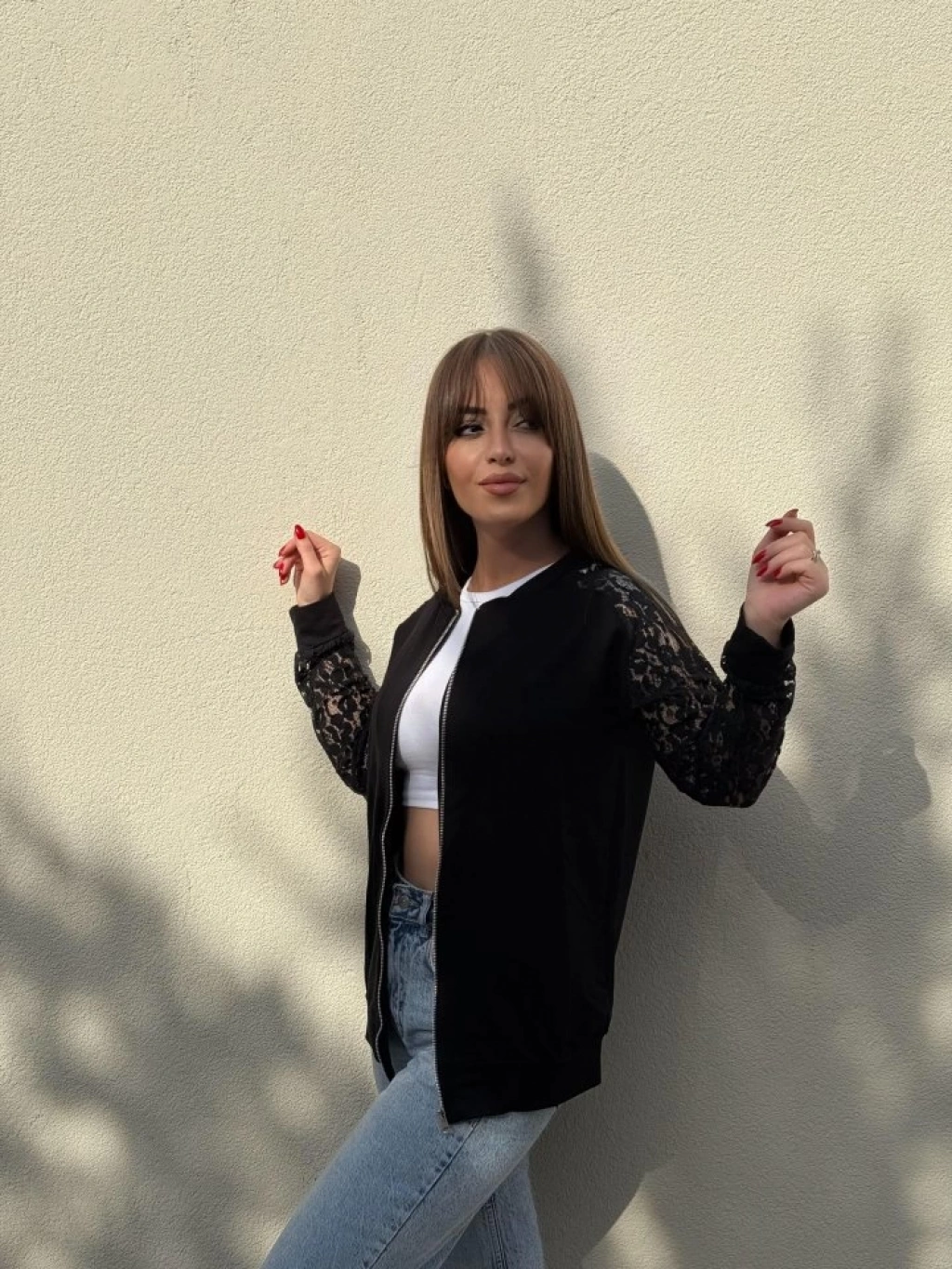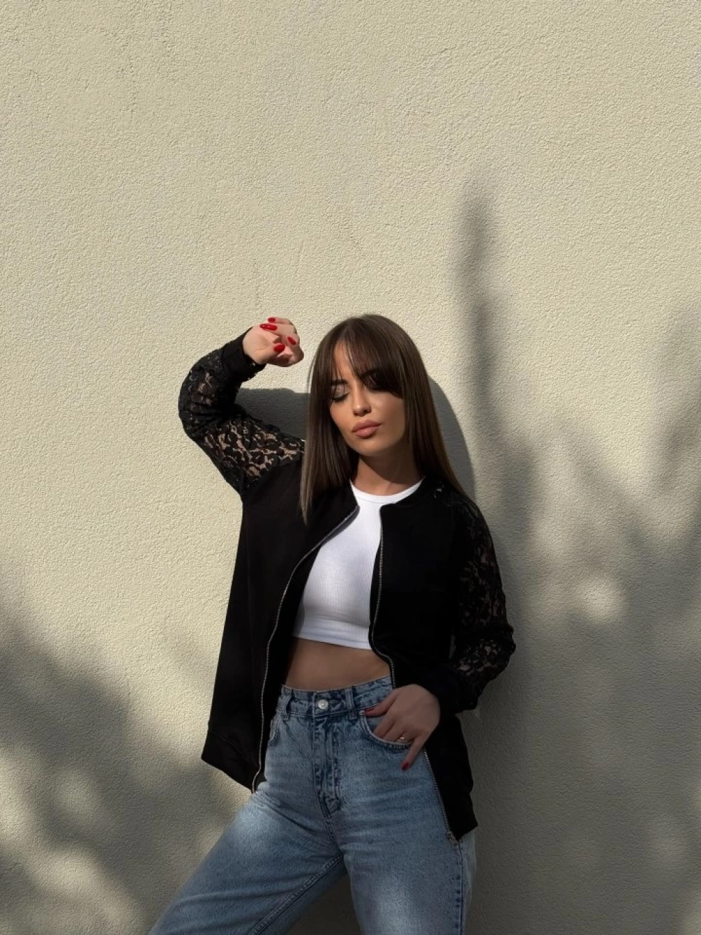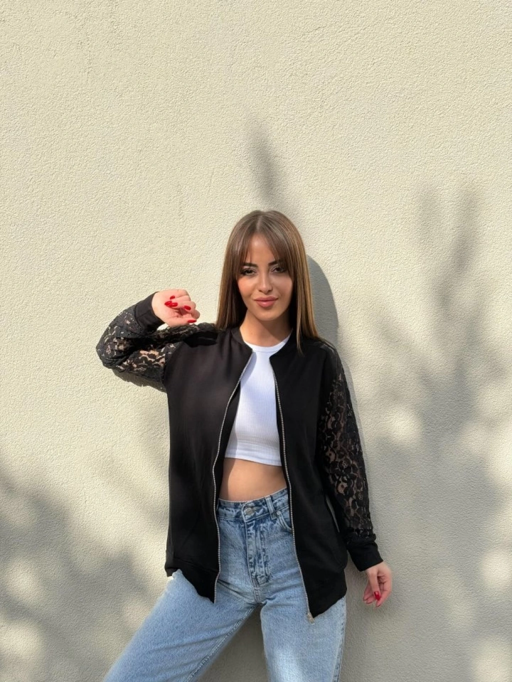 Kadın Uzun Kollu Kolları Dantel Detay önden Fermuarlı Viskon Iki Iplik Ceket