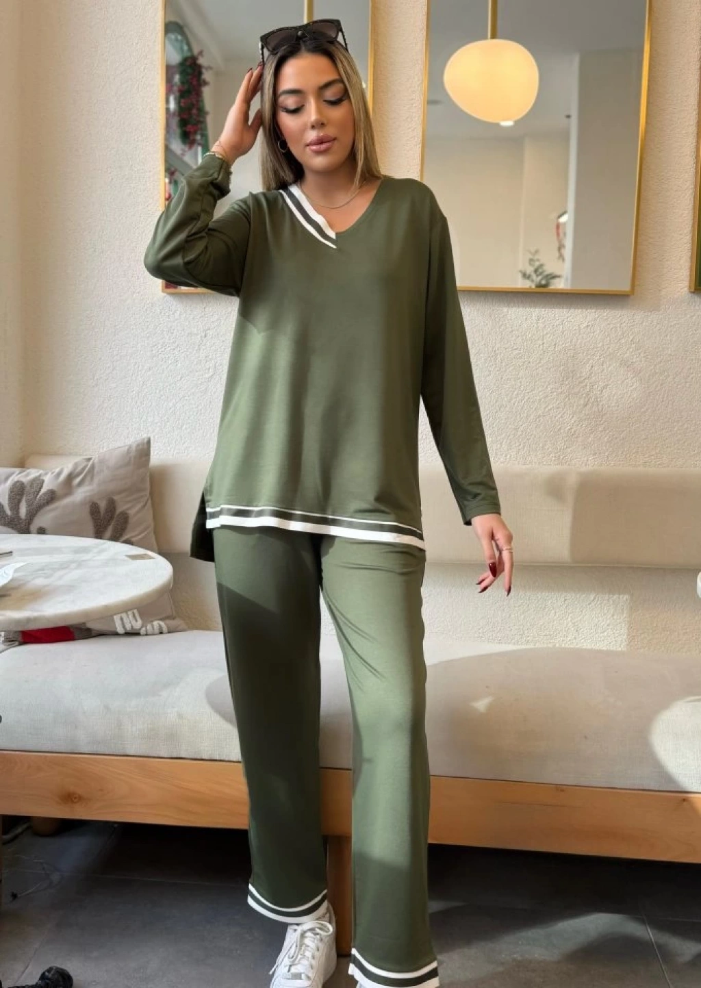 Kadın Uzun Kollu Ribana Detay Viskon Iki Iplik Ikili Takım
