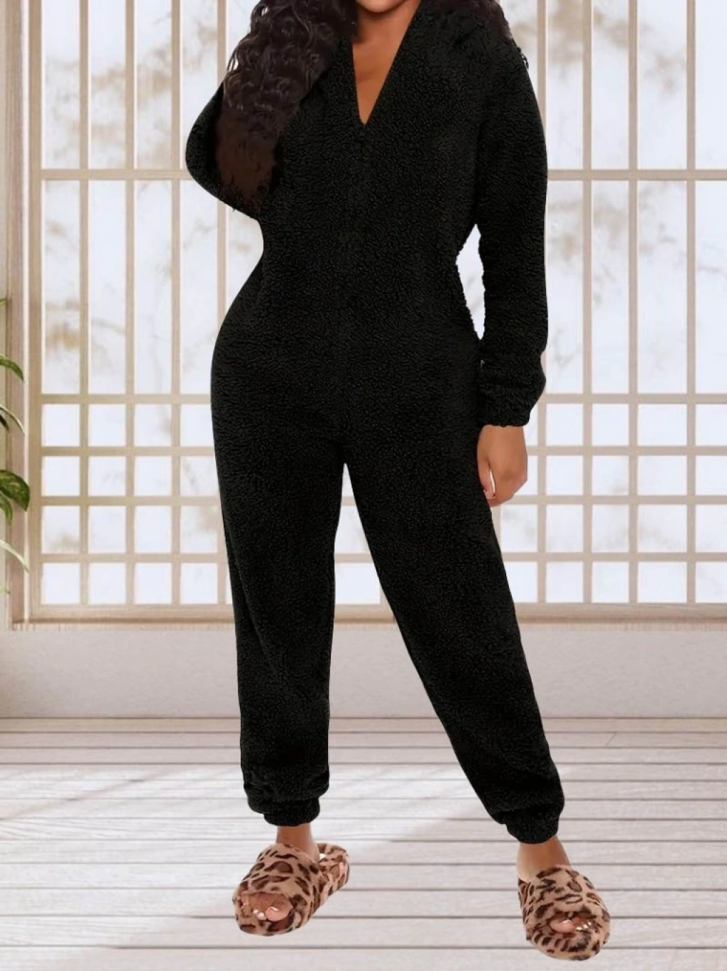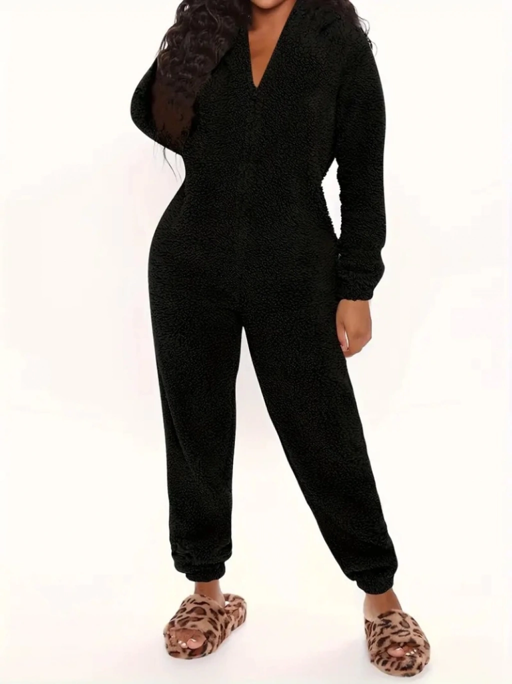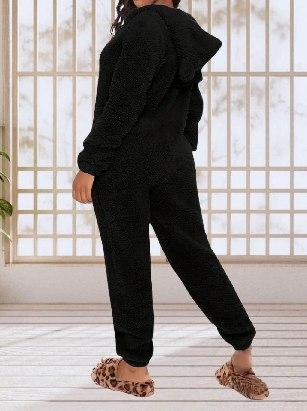 Kadın Uzun Kollu Kapüşonlu Tavşan Kulak Detaylı Peluş Tulum
