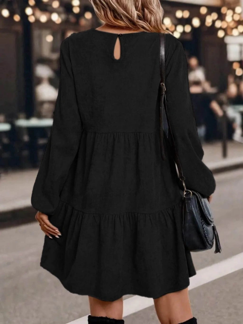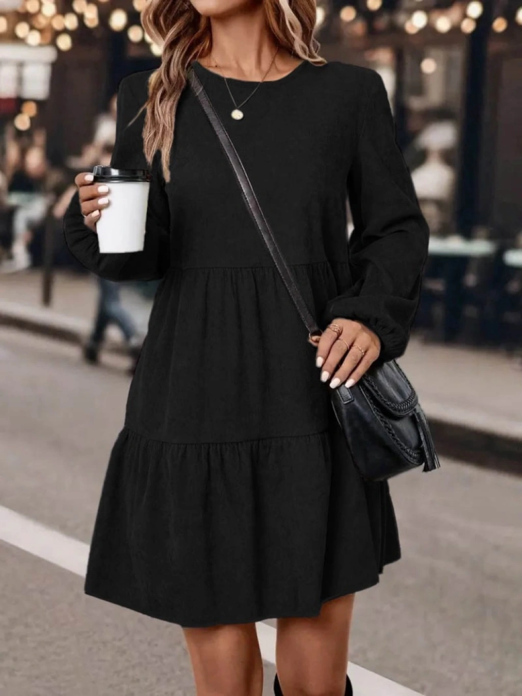 Kadın Uzun Kollu Kol Ucu Lastikli Süet Mini Boy Elbise