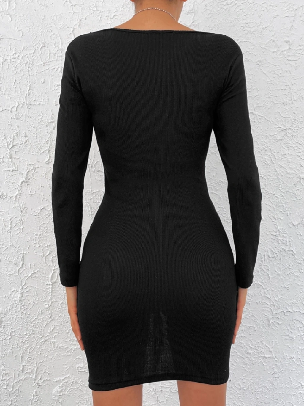 Kadın Uzun Kollu V Yaka Büzgülü Kaşkorse Elbise