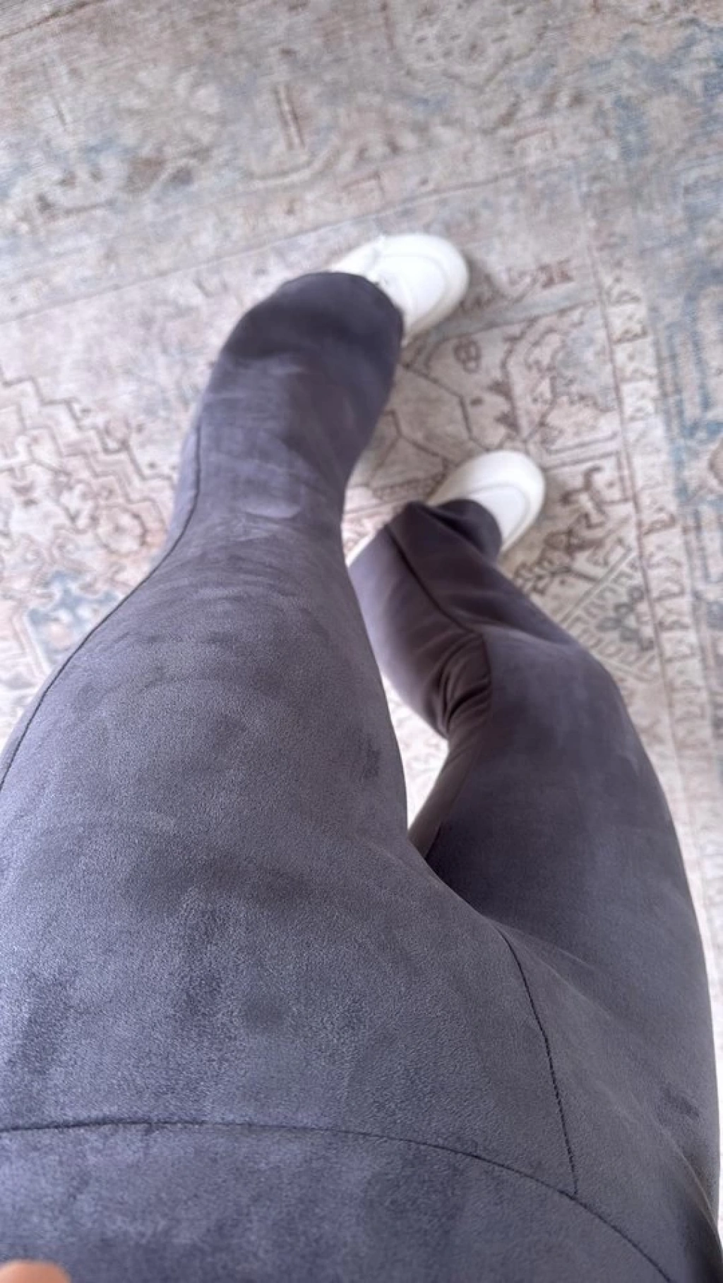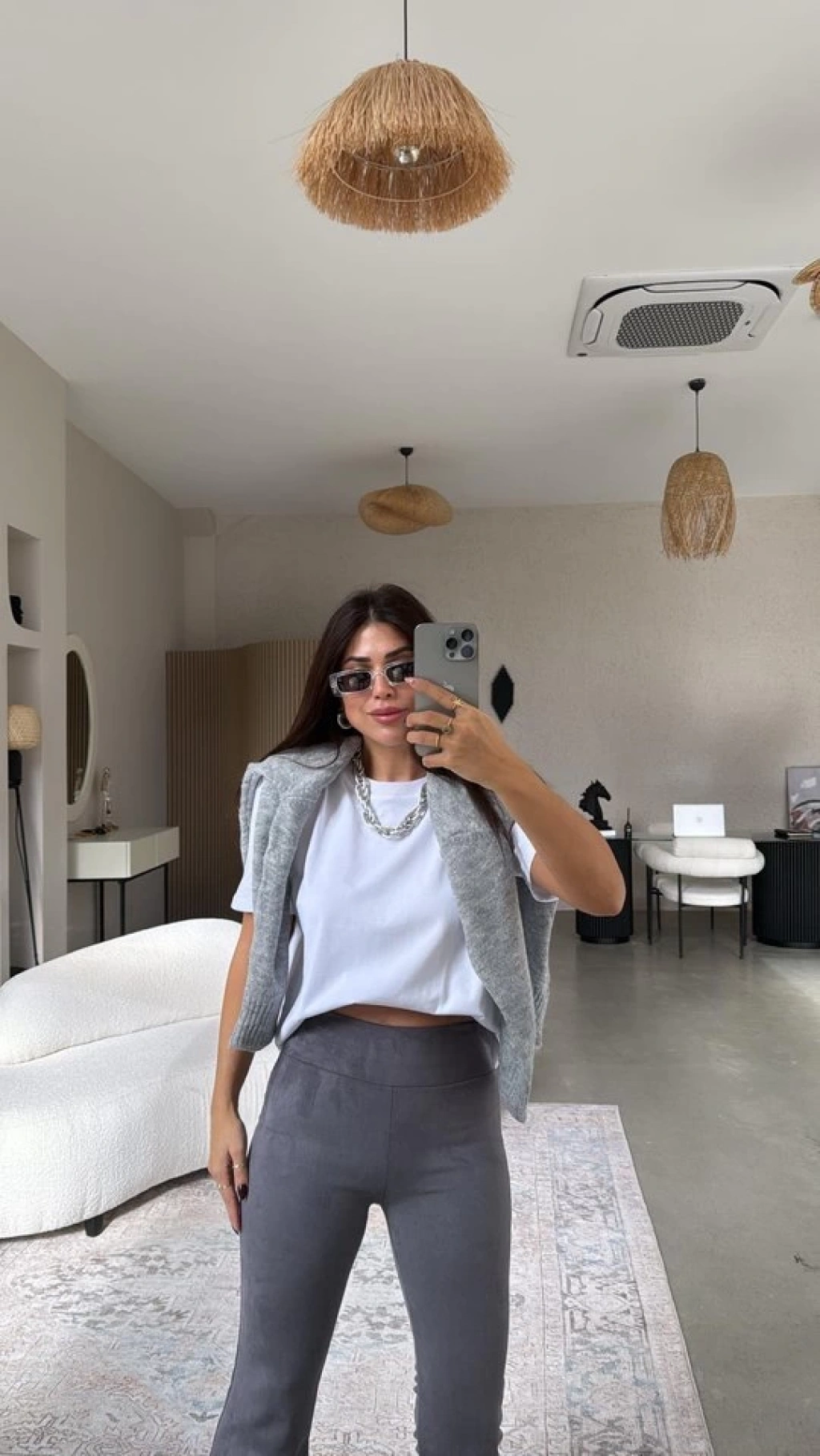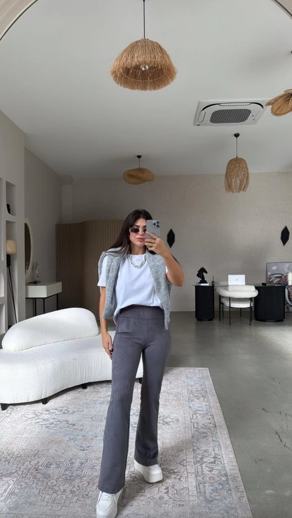 Kadın Yüksek Bel Süet Kumaş Ispanyol Paça Detay Pantolon