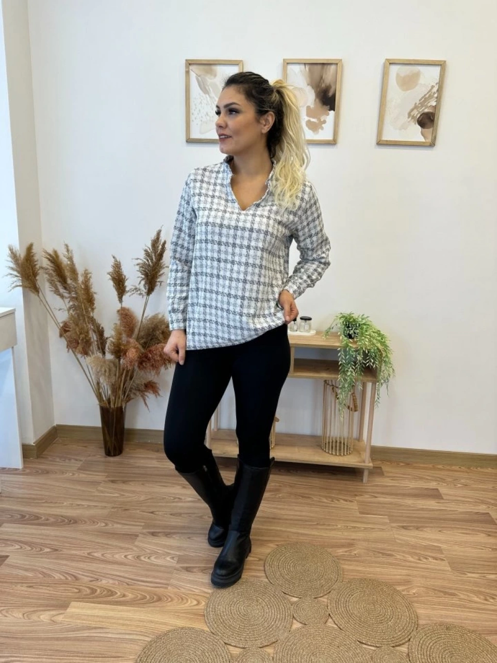 Modelin Ölçüleri: Boy:165, Kg:55, Göğüs:90, Bel:72, Kalça: 100