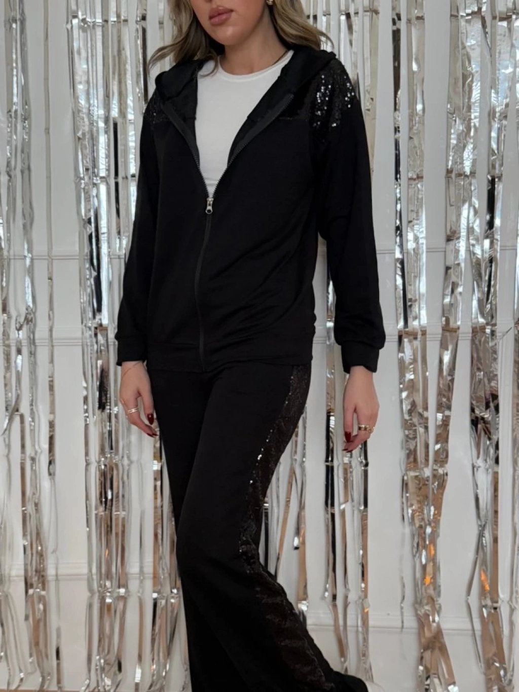 Kadın Yılbaşı özel Iki Iplik Kumaş Pul Ve Fermuar Detaylı Ikili Takım
