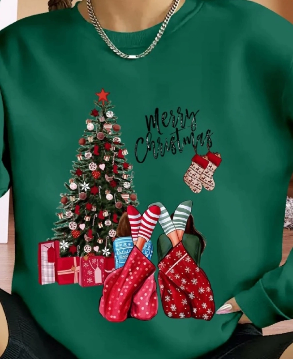 Kadın Yılbaşı Özel Uzun Kollu Bisiklet Yaka Viskon Iki Iplik Bluz