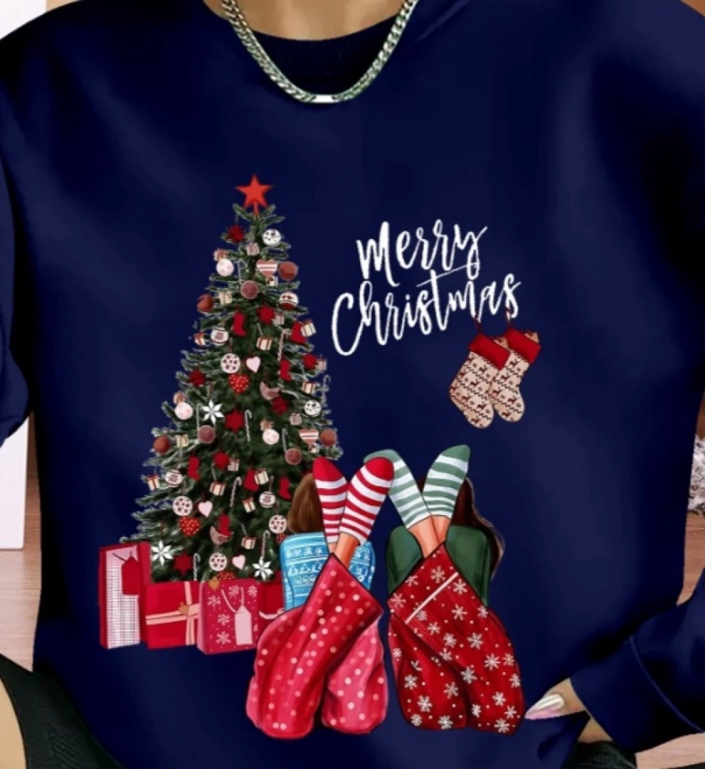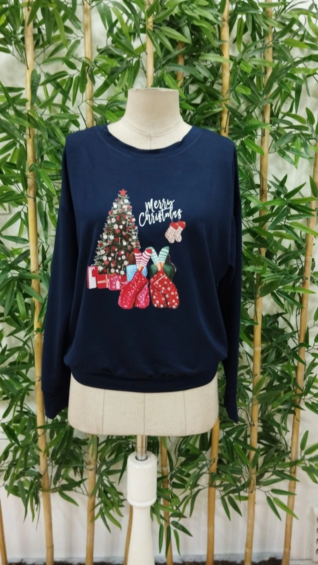 Kadın Yılbaşı Özel Uzun Kollu Bisiklet Yaka Viskon Iki Iplik Bluz