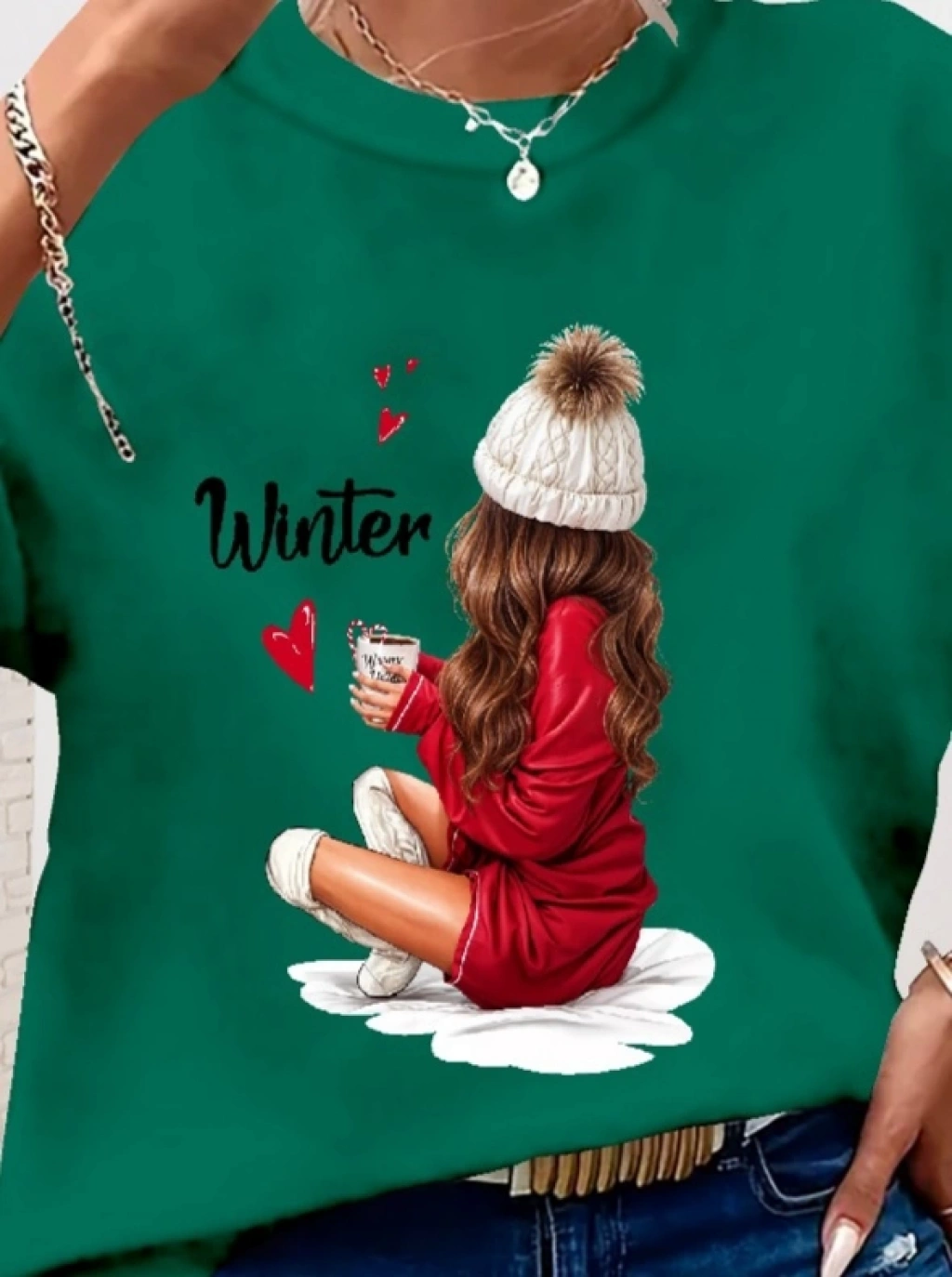Kadın Yılbaşı özel Uzun Kollu Bisiklet Yaka Desenli Viskon Iki Iplik Bluz