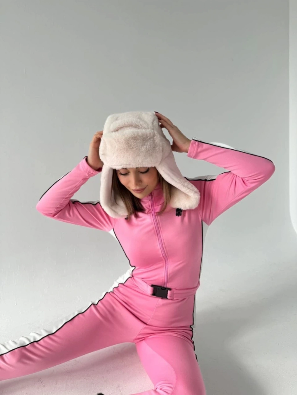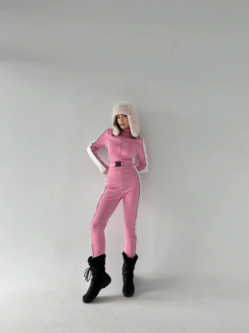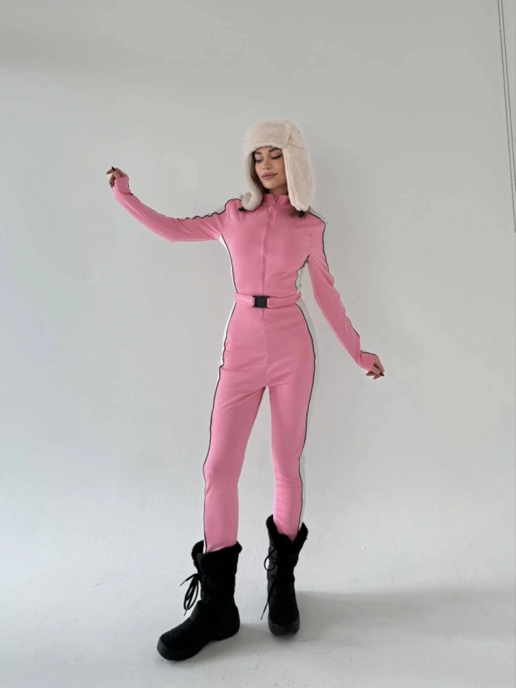Kemer Detaylı Fermuarlı Tulum - Pembe