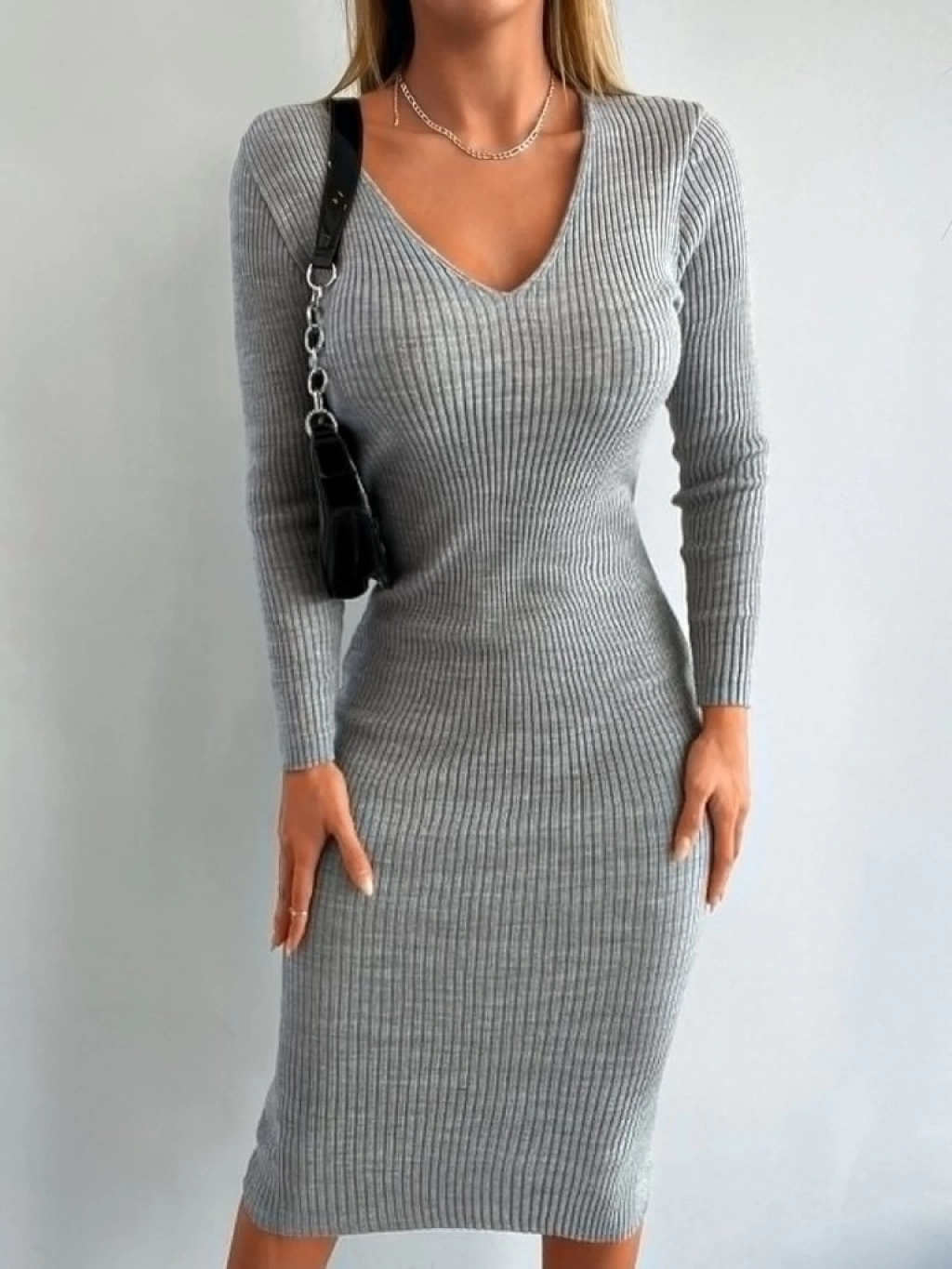 Kadın Uzun Kollu V Yaka Triko Elbise