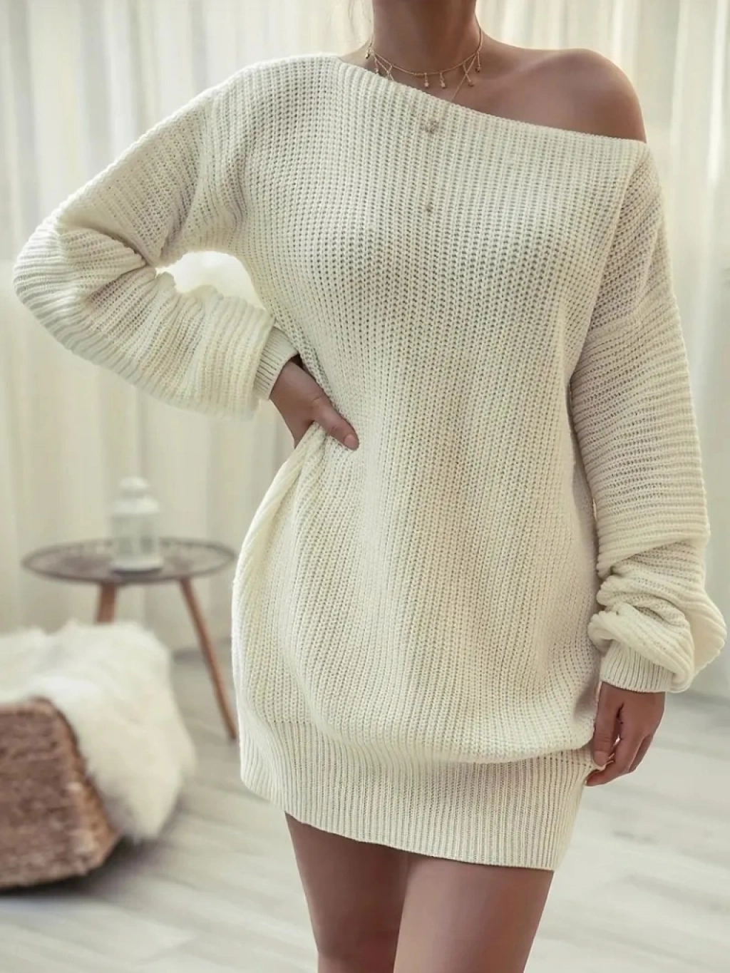 Kadın Uzun Tek Omuzlu Açık Salaş Triko Bluz