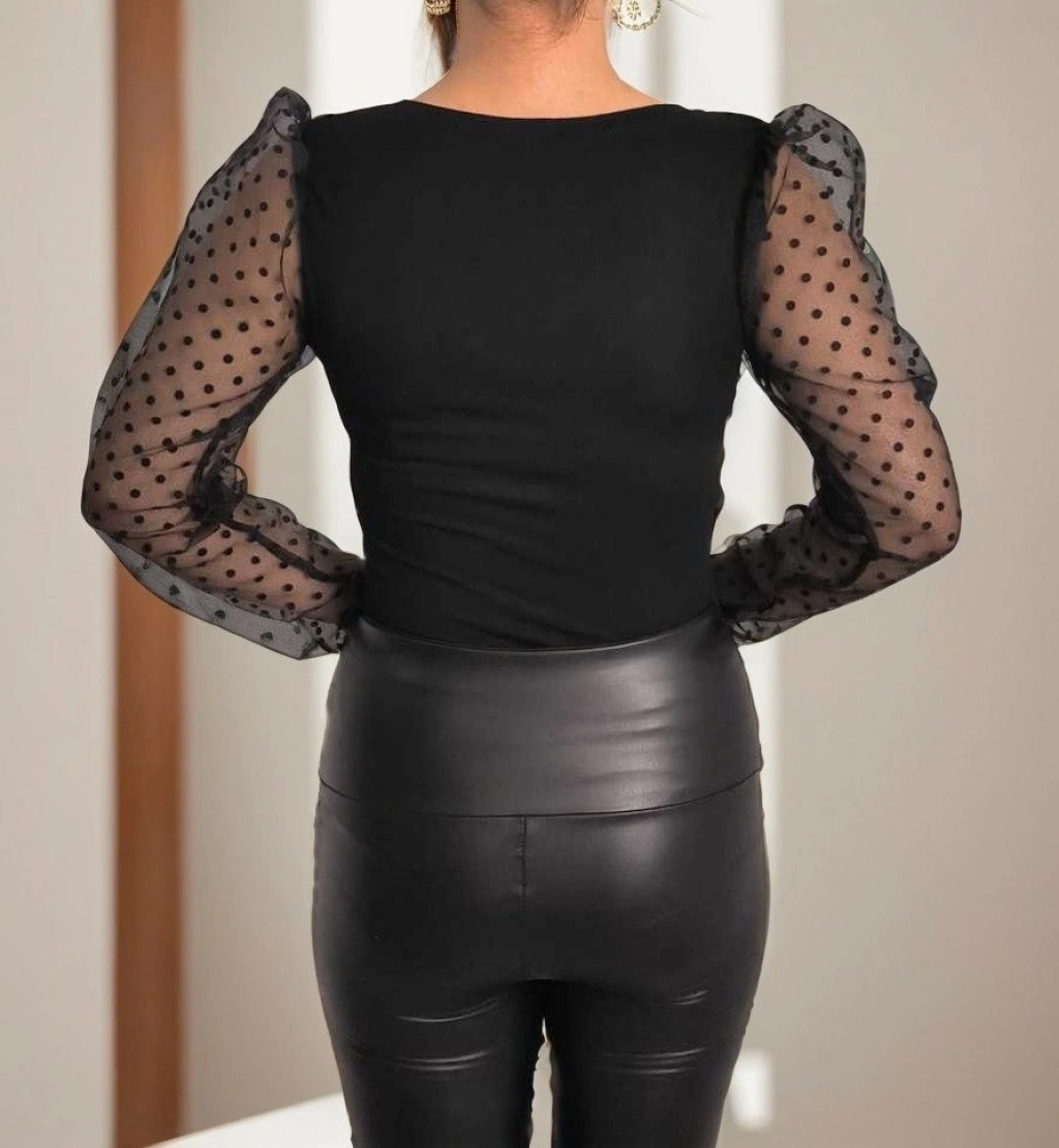Kadın Uzun Kollu Omuz Inci Kollar Tül Detay Viskon Bluz
