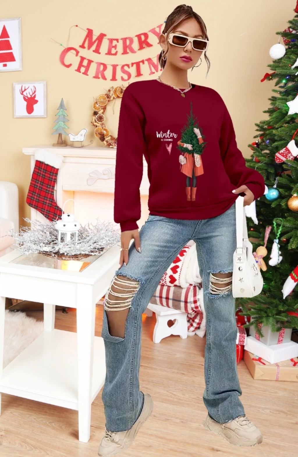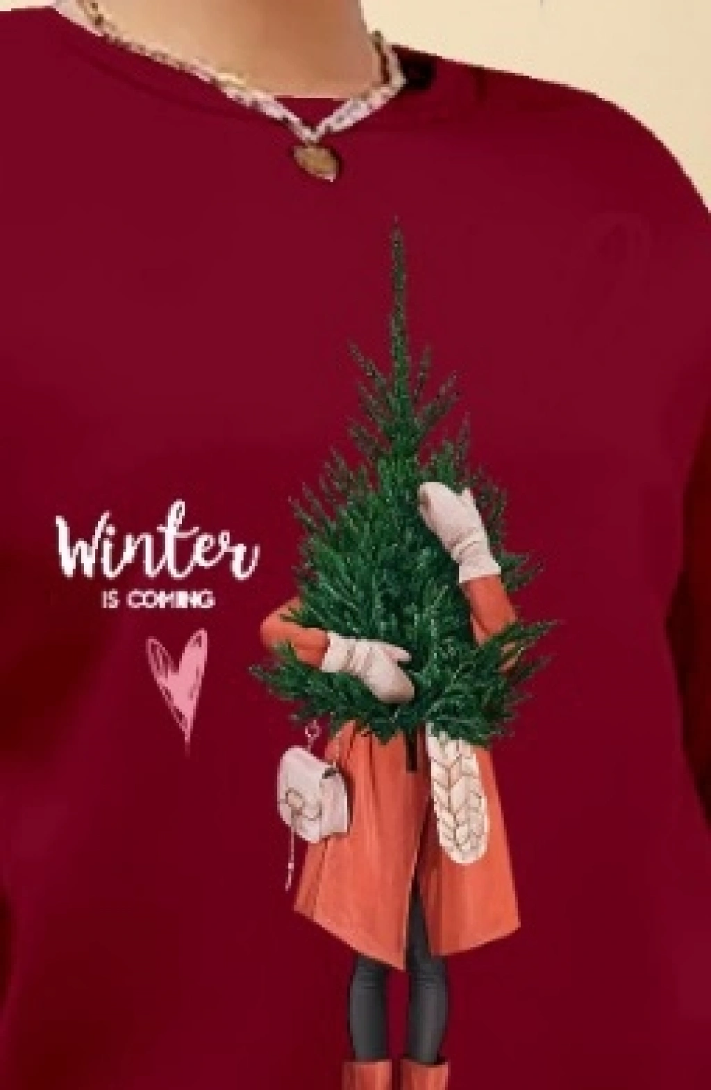 Kadın Uzun Kollu Bisiklet Yaka Desenli Viskon Iki Iplik Bluz