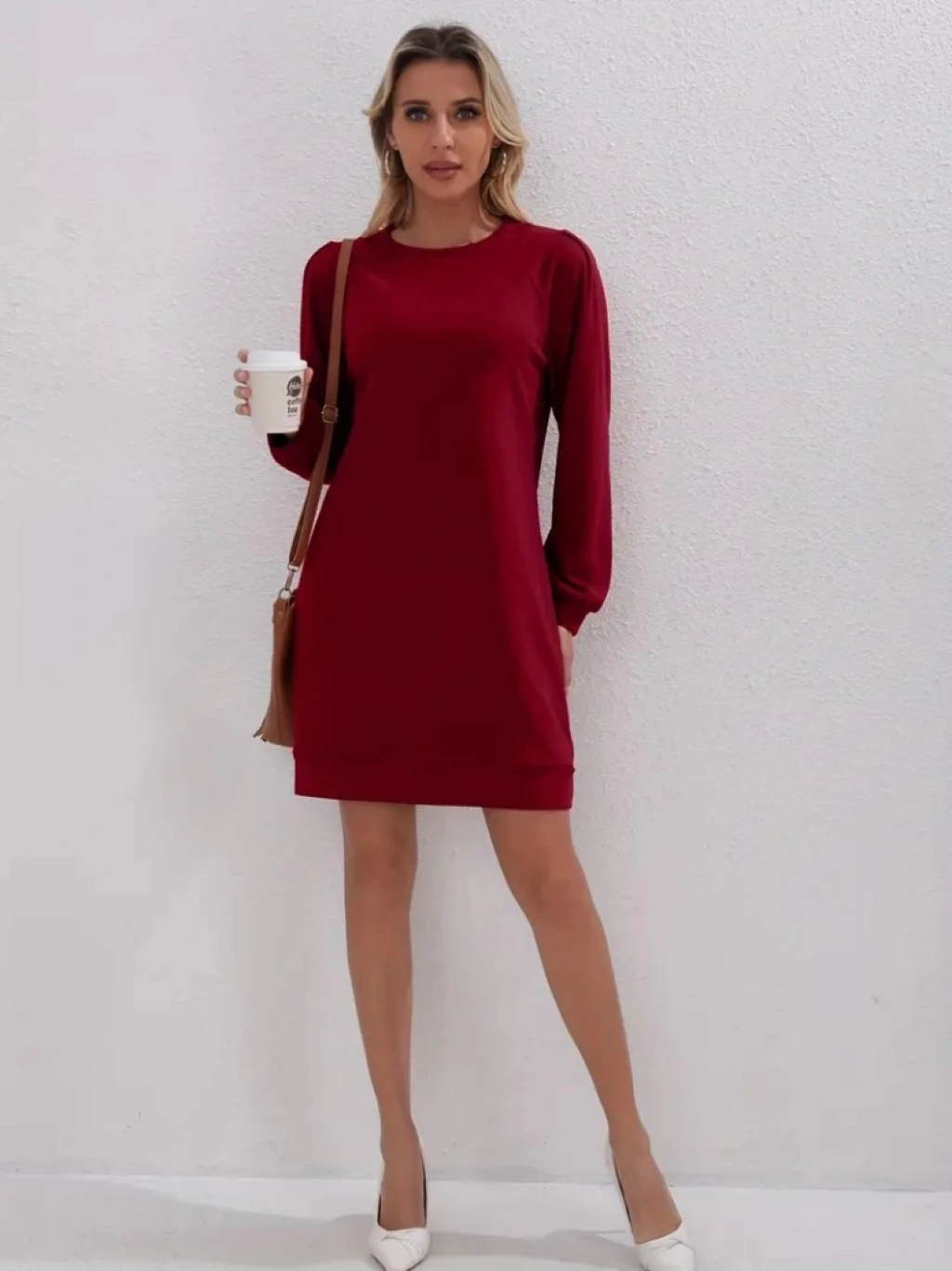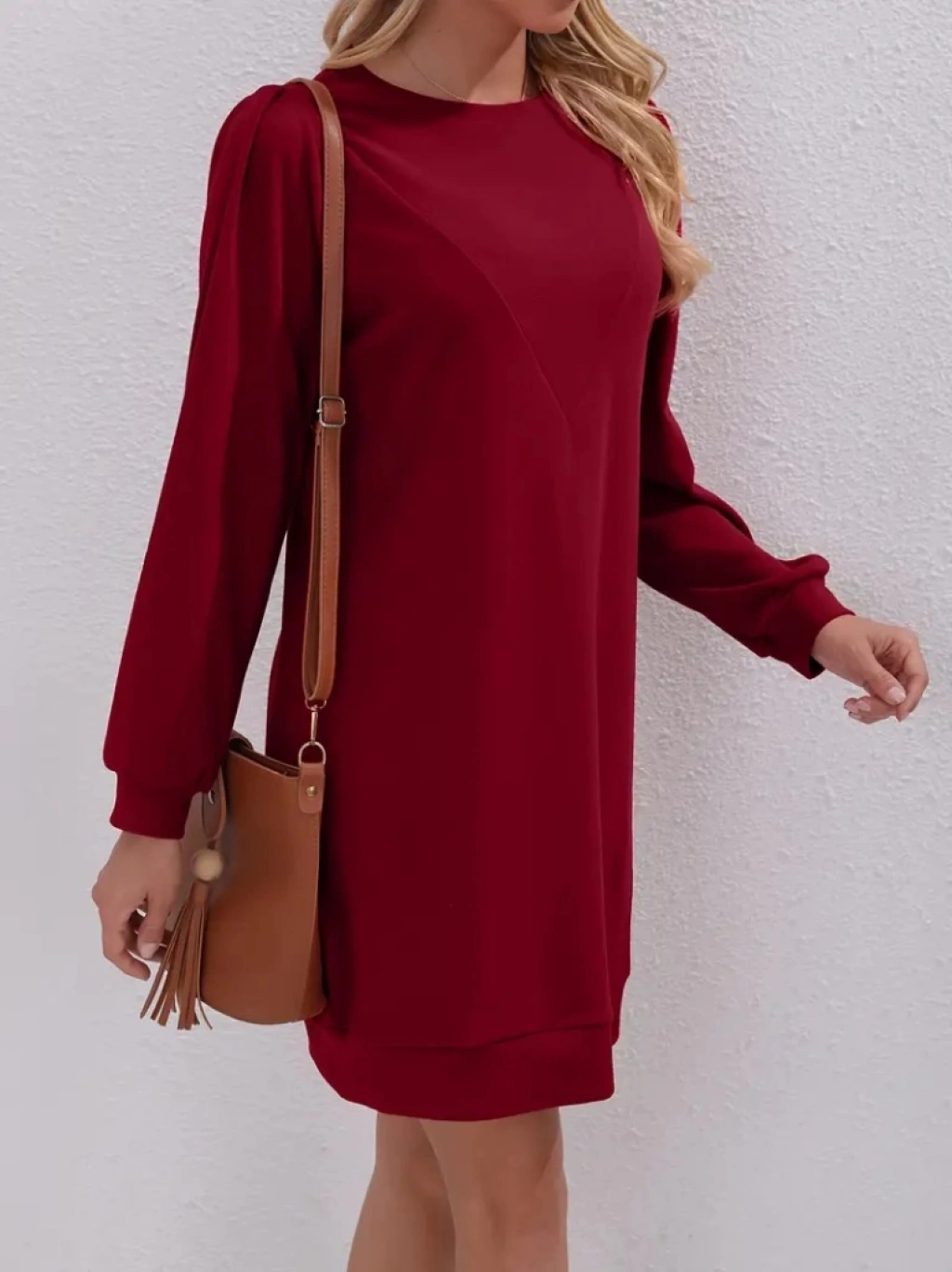 Kadın Uzun Kollu Bisiklet Yaka Iki Iplik Elbise