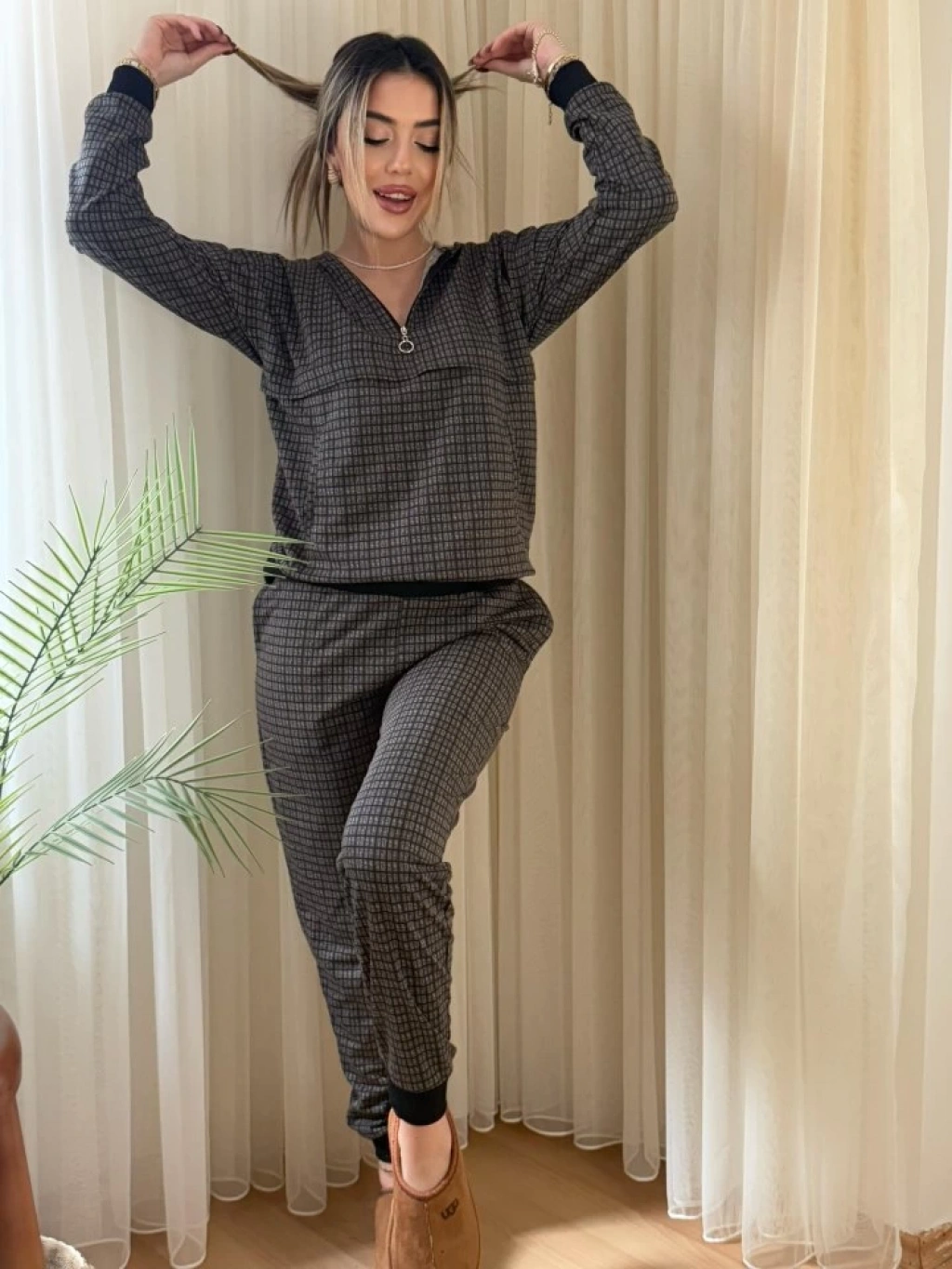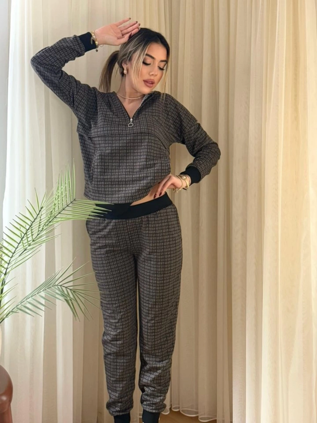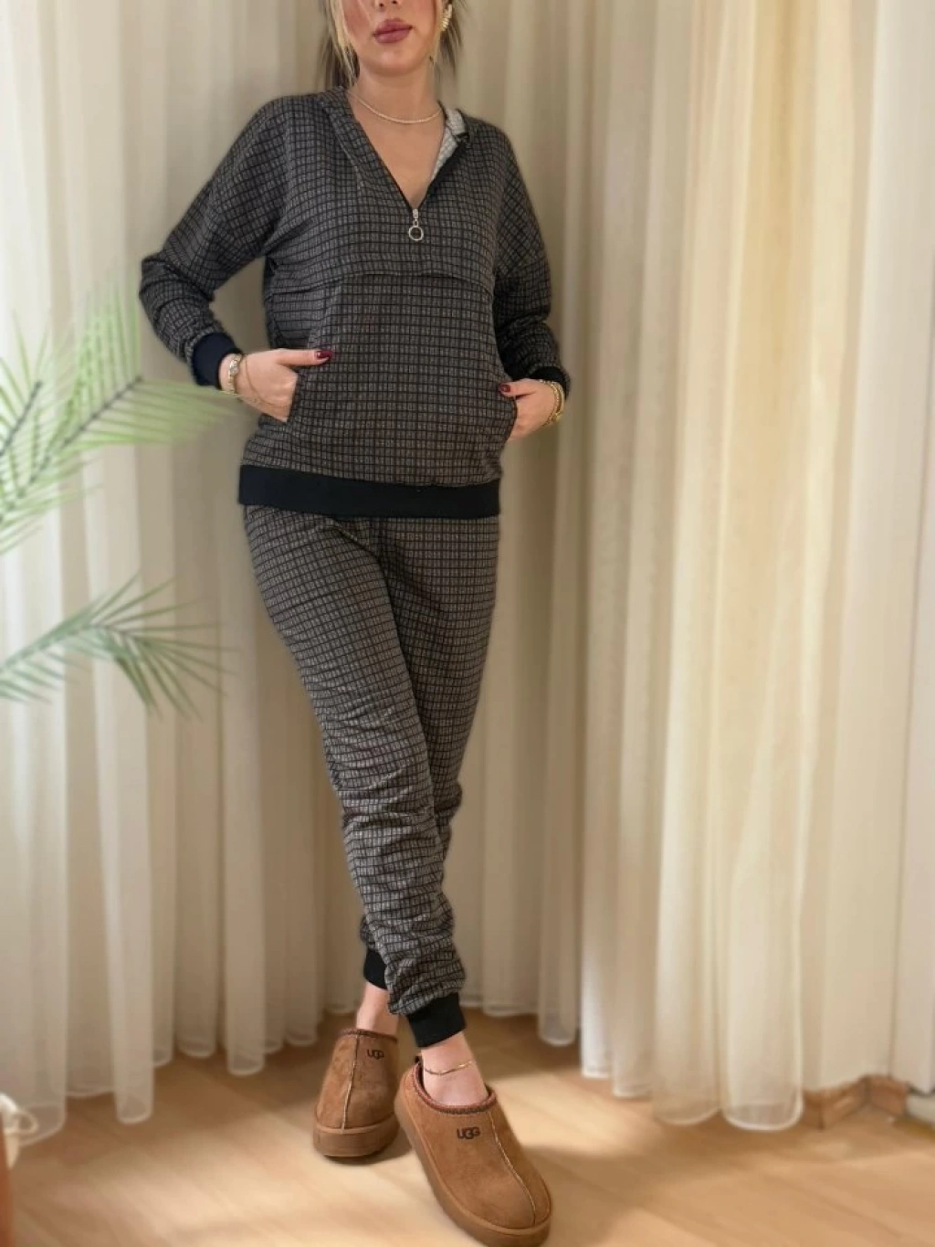 Kadın Iki Iplik Kumaş Fermuar Detay Kapüşonlu Ikili Takım