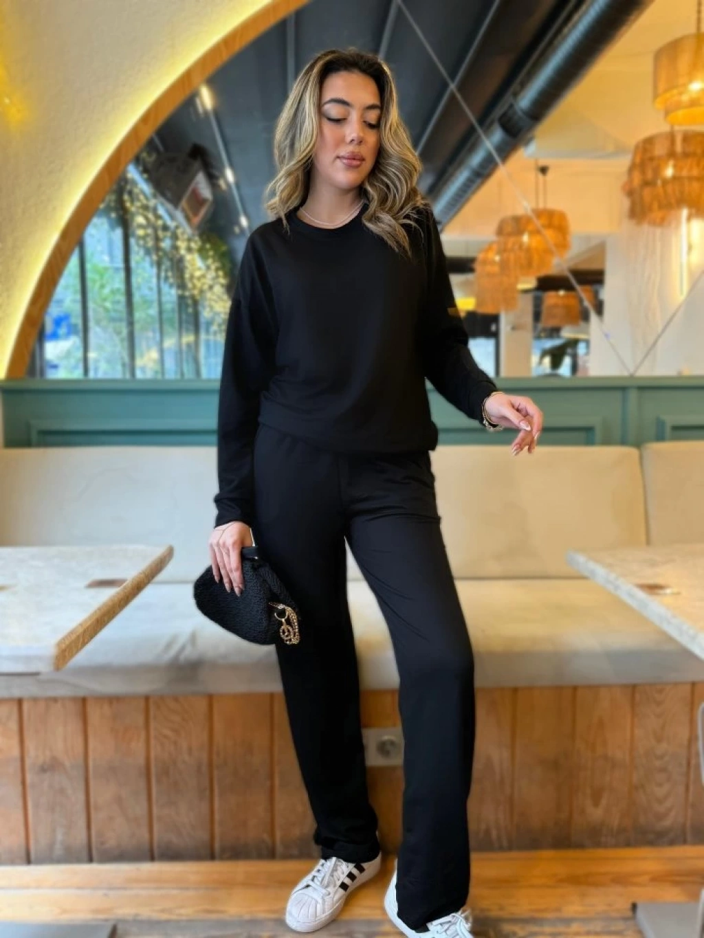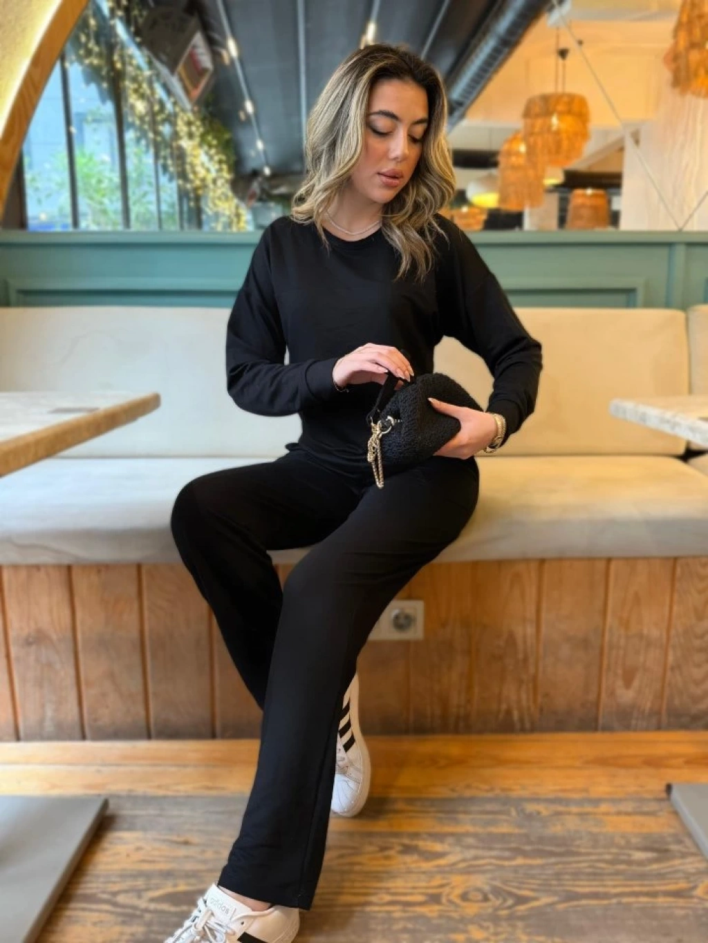 Kadın Uzun Kollu Bisiklet Yaka Viskon Iki Iplik Bluz Ve Pantolon Ikili Takım