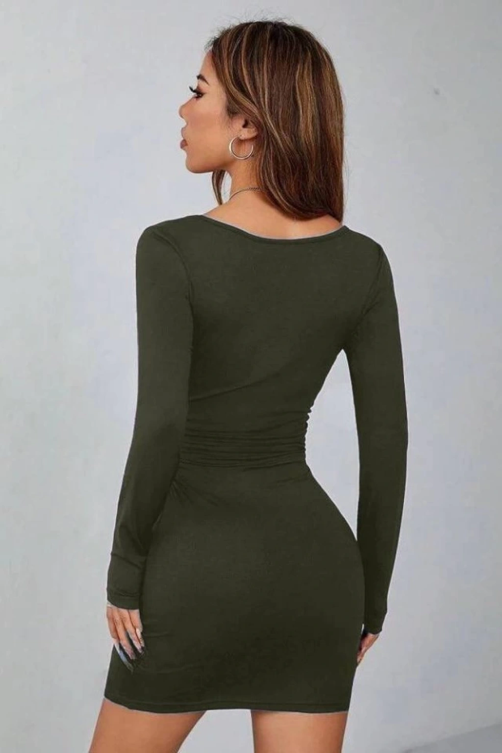 Kadın Uzun Kollu Kare Yaka Iç Göstermeyen Mini Elbise