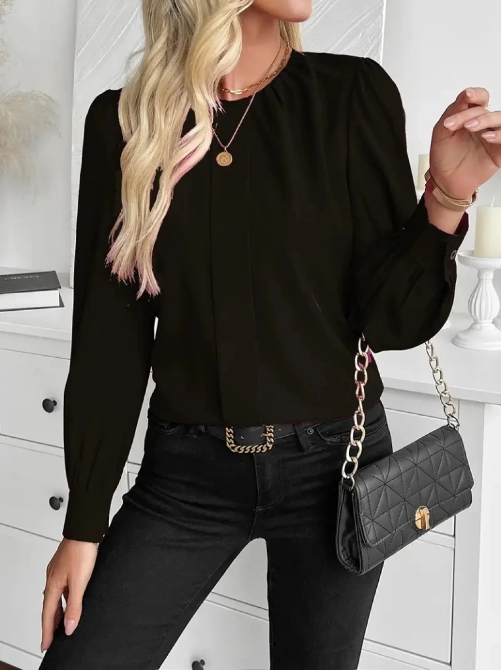 Kadın Uzun Kollu Bisiklet Yaka Pileli Ithal Krep Bluz