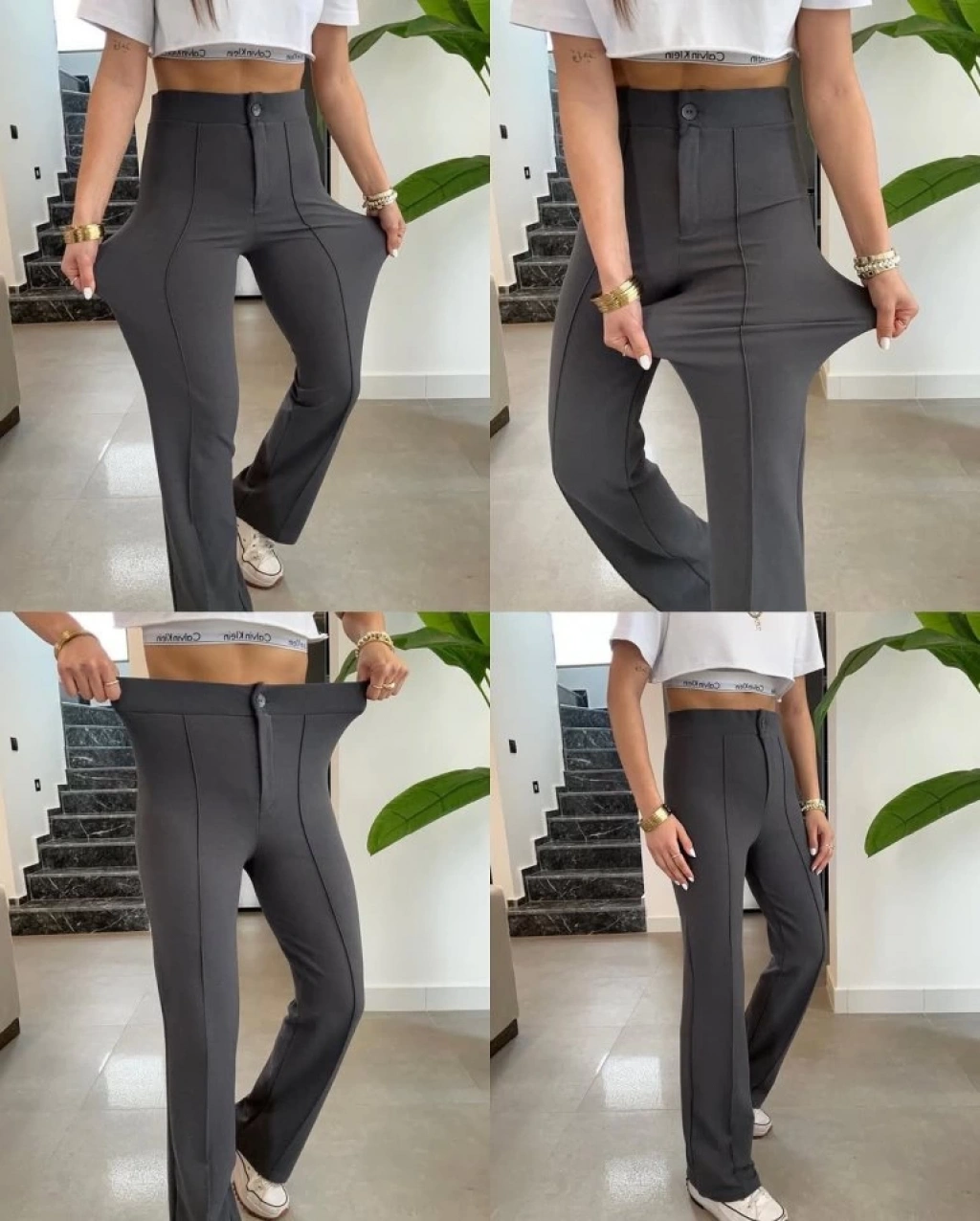 Kadın Yüksek Bel Full Likralı Krep Kumaş Pantolon