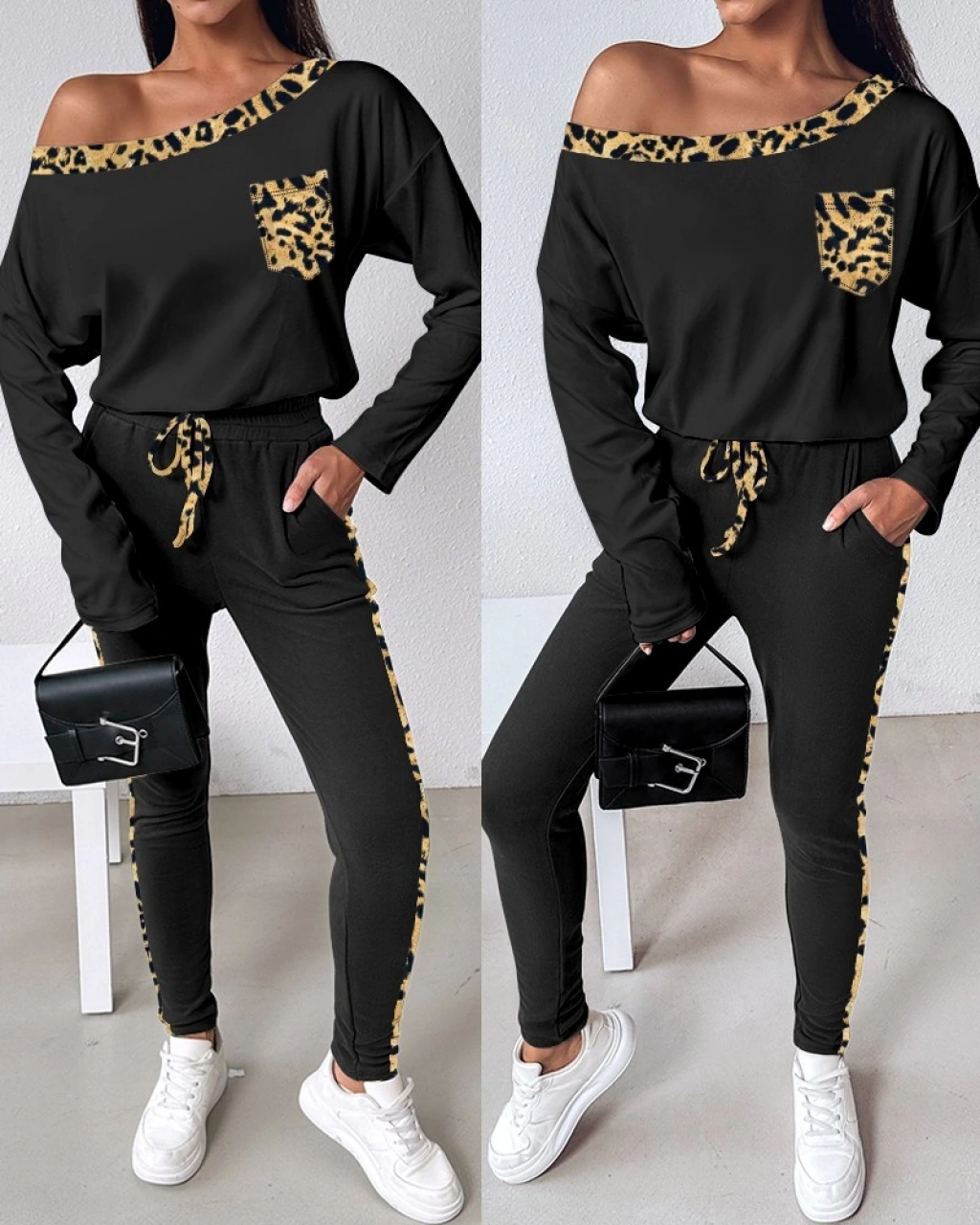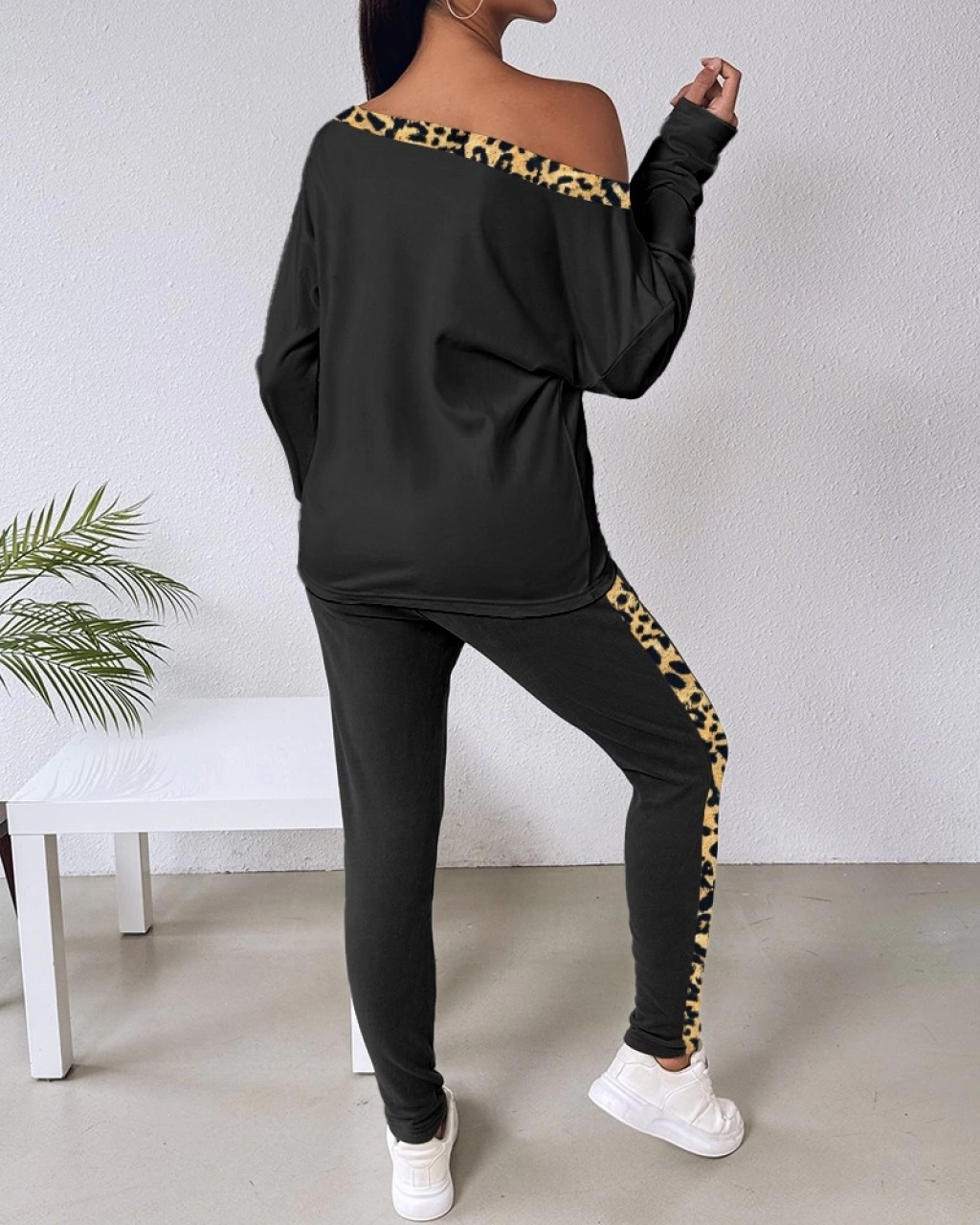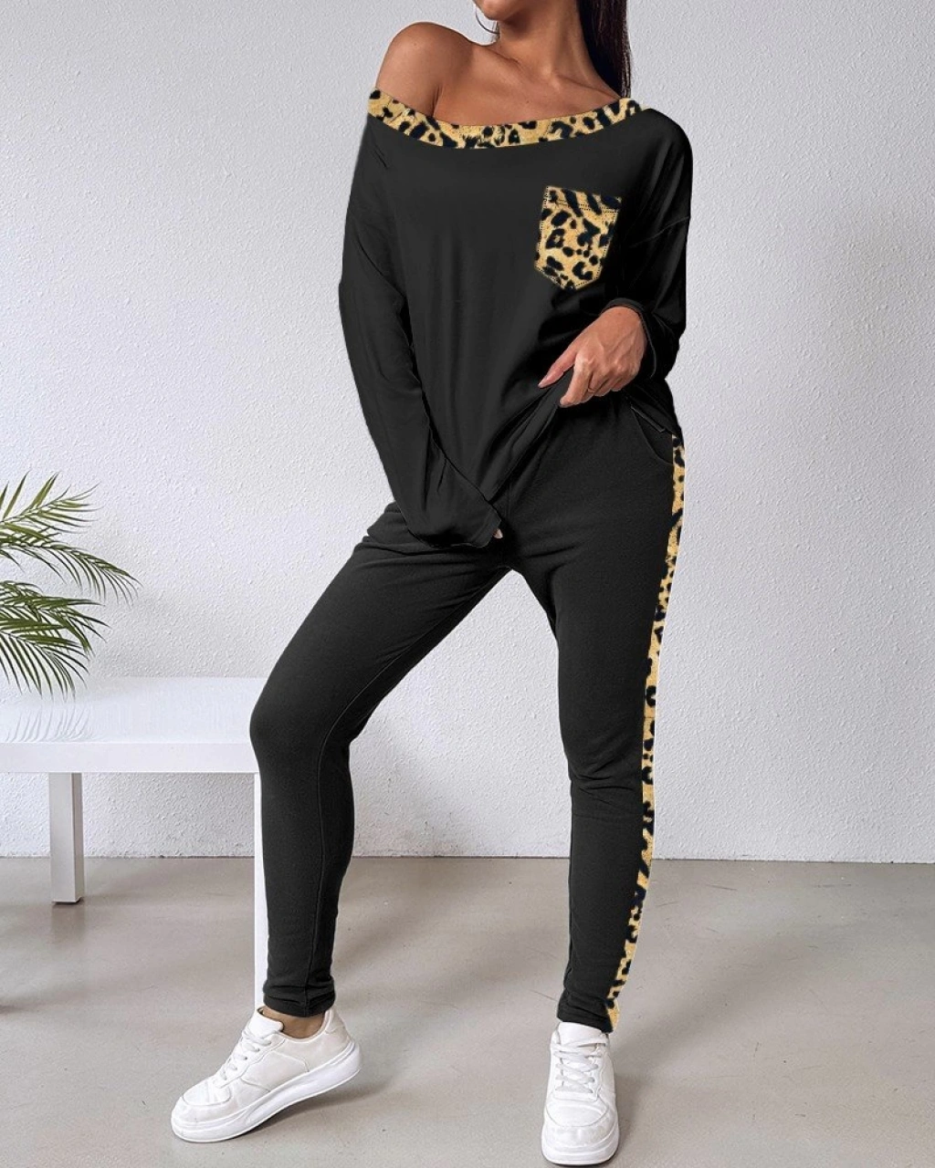 Kadın Uzun Kollu Leopar Detay Viskon Iki Iplik Ikili Takım
