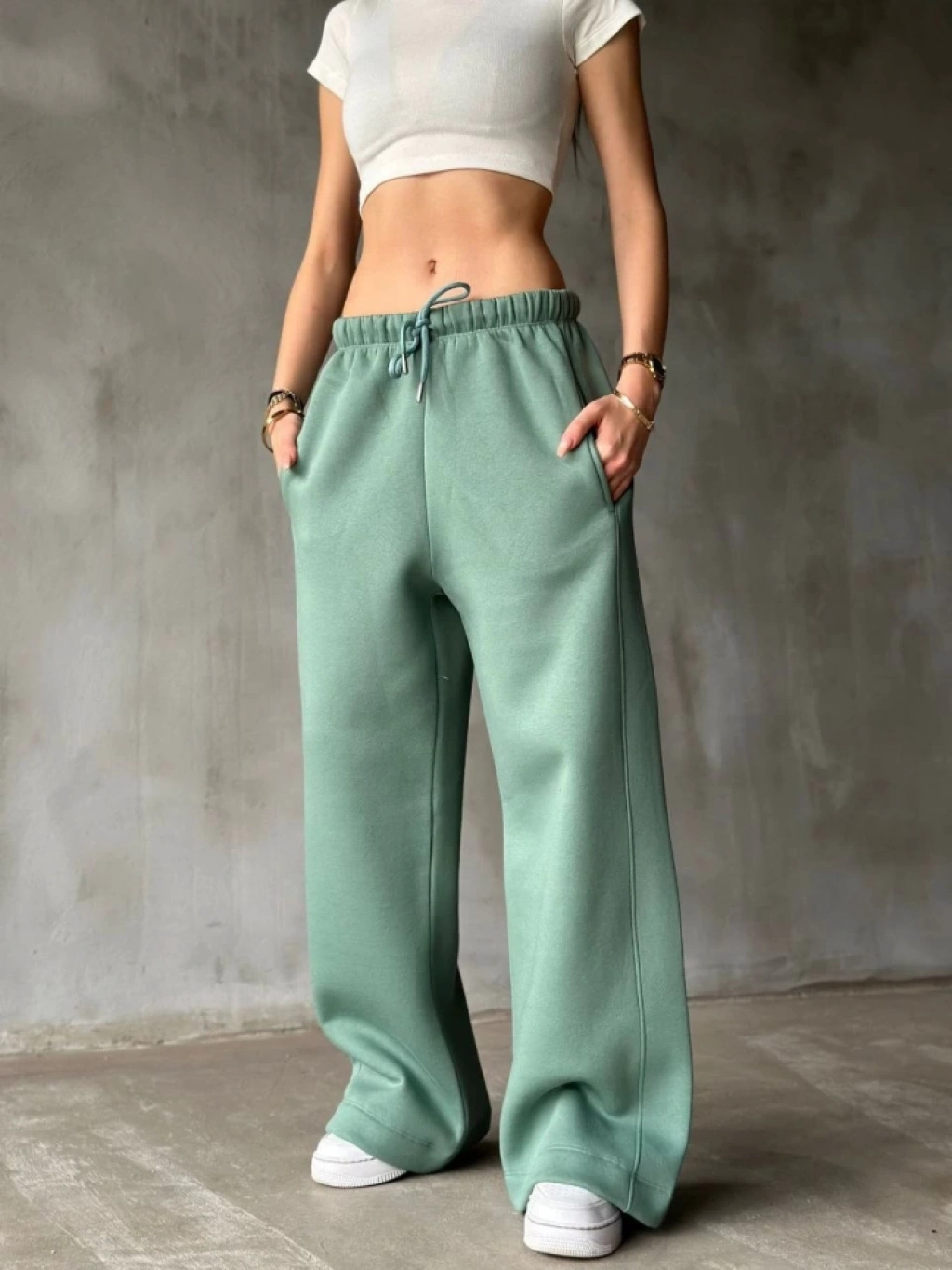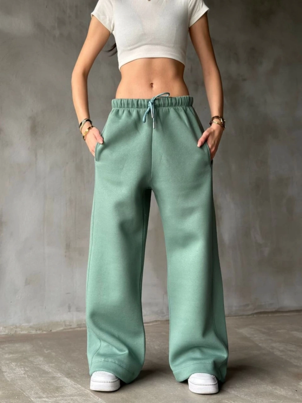 Palazzo Bol Paça Eşofman Pantolon - Yeşil