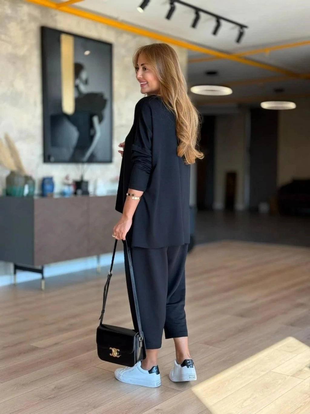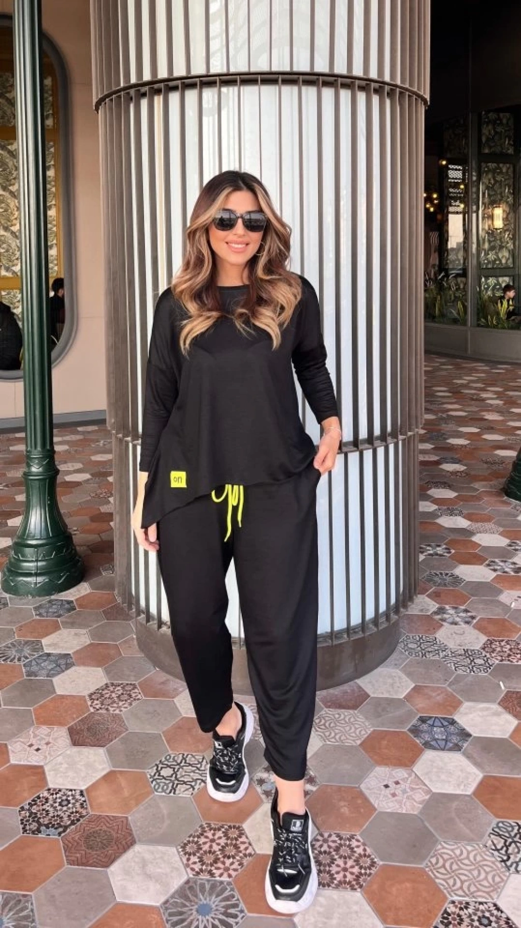 Kadın Iki Iplik Viskon Pamuk Kumaş Arma Detaylı Ikili Takım