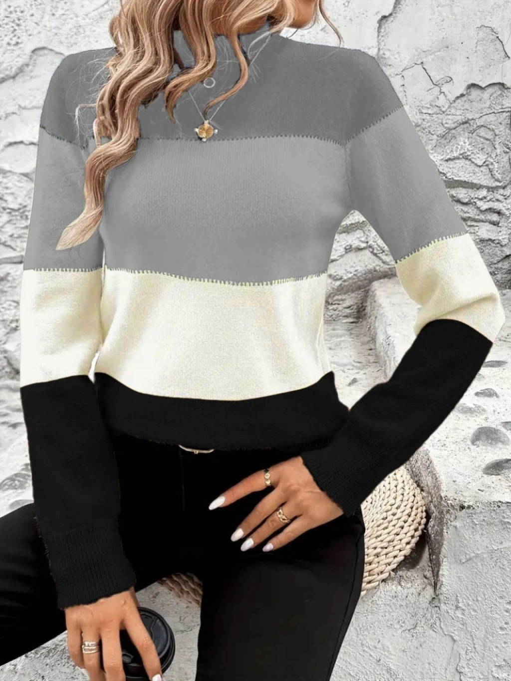 Kadın Uzun Kollu Yarı Balıkçı Yaka Triko Kazak