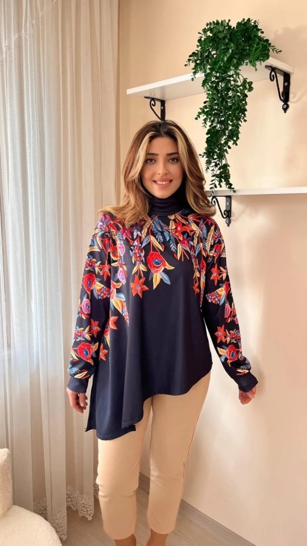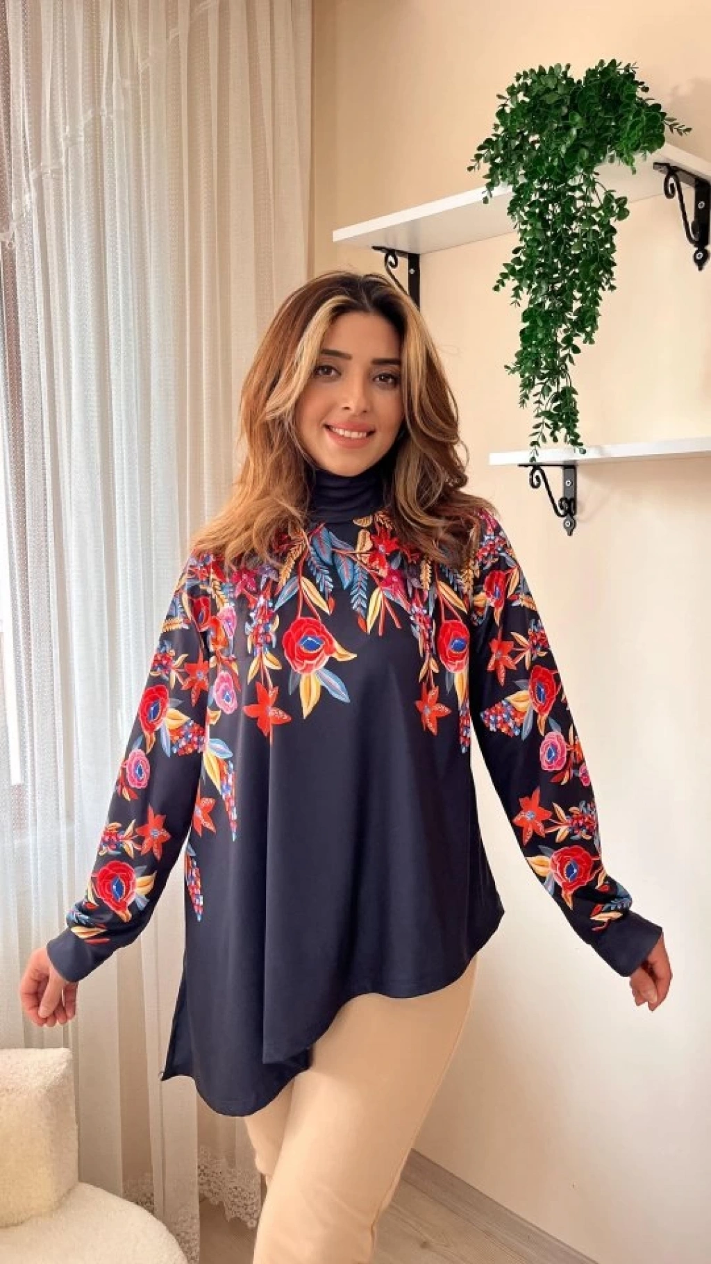 Kadın Uzun Kollu Balıkçı Yaka Asimetrik Kesim Dalgıç Kumaş Bluz