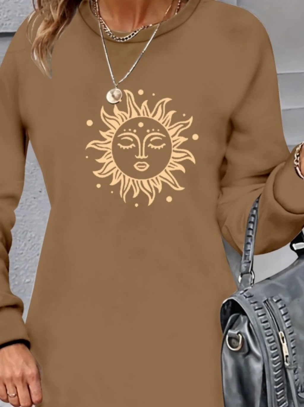 Kadın Uzun Kollu Bisiklet Yaka Güneş Desenli Viskon Iki Iplik Elbise