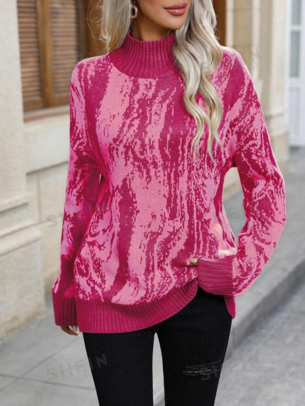 Kadın Uzun Kollu Balıkçı Yaka çok Renkli Triko Bluz