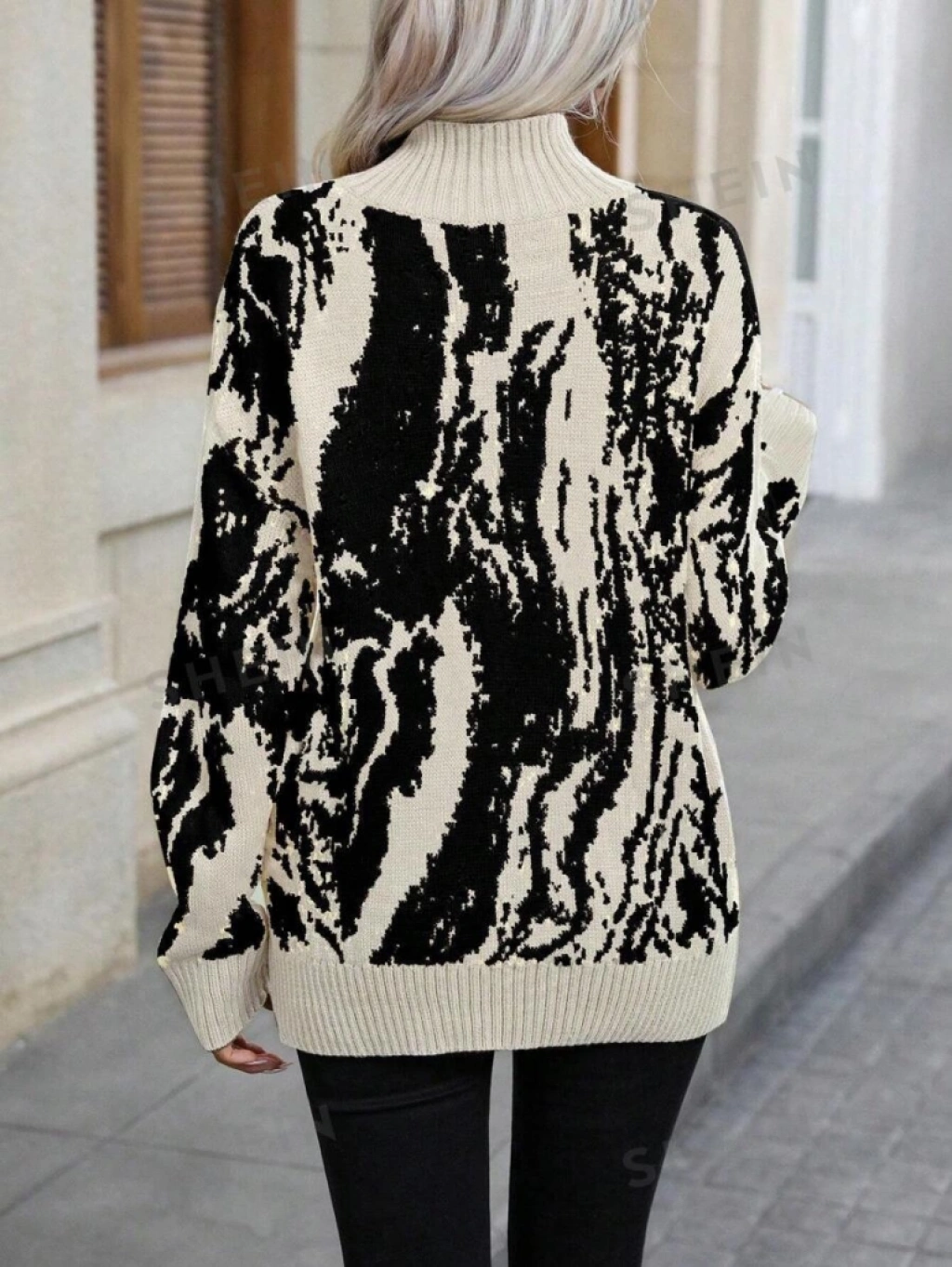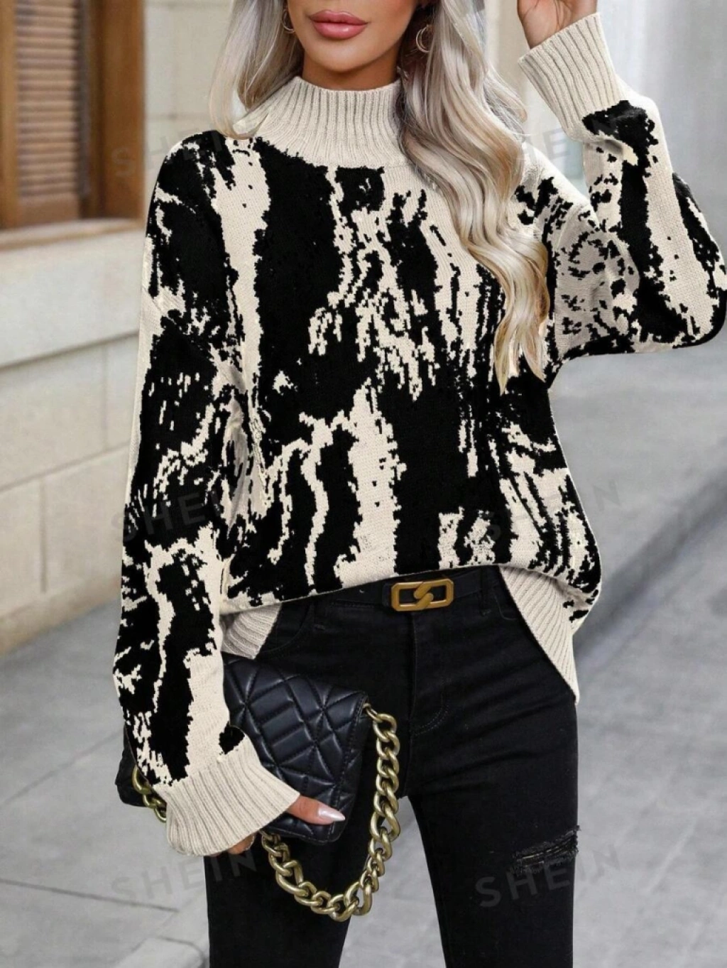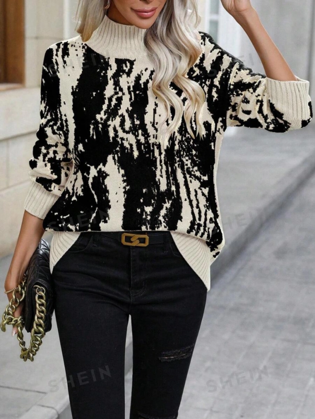 Kadın Uzun Kollu Balıkçı Yaka çok Renkli Triko Bluz
