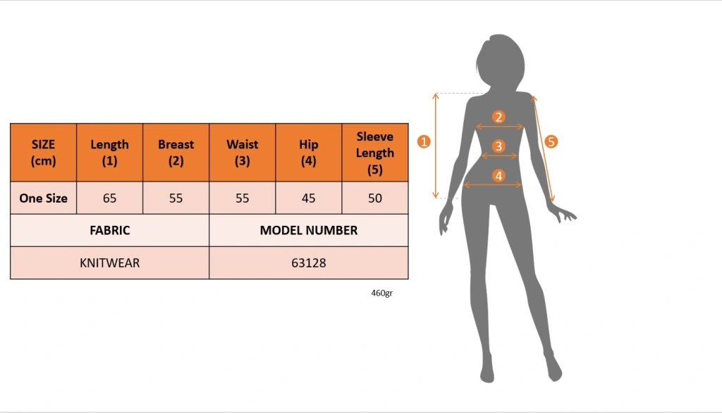Modelin Ölçüleri: Boy:165, Kg:55, Göğüs:90, Bel:72, Kalça: 100