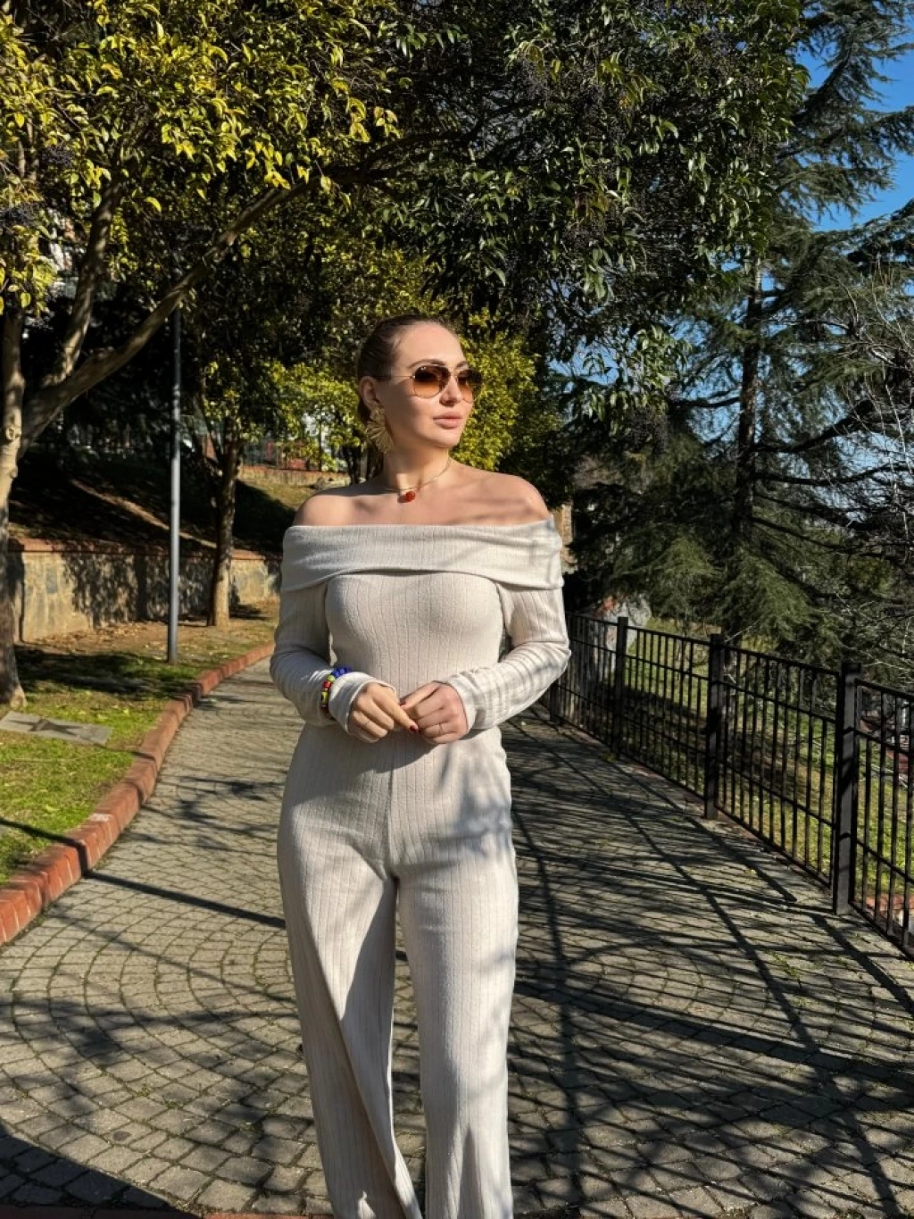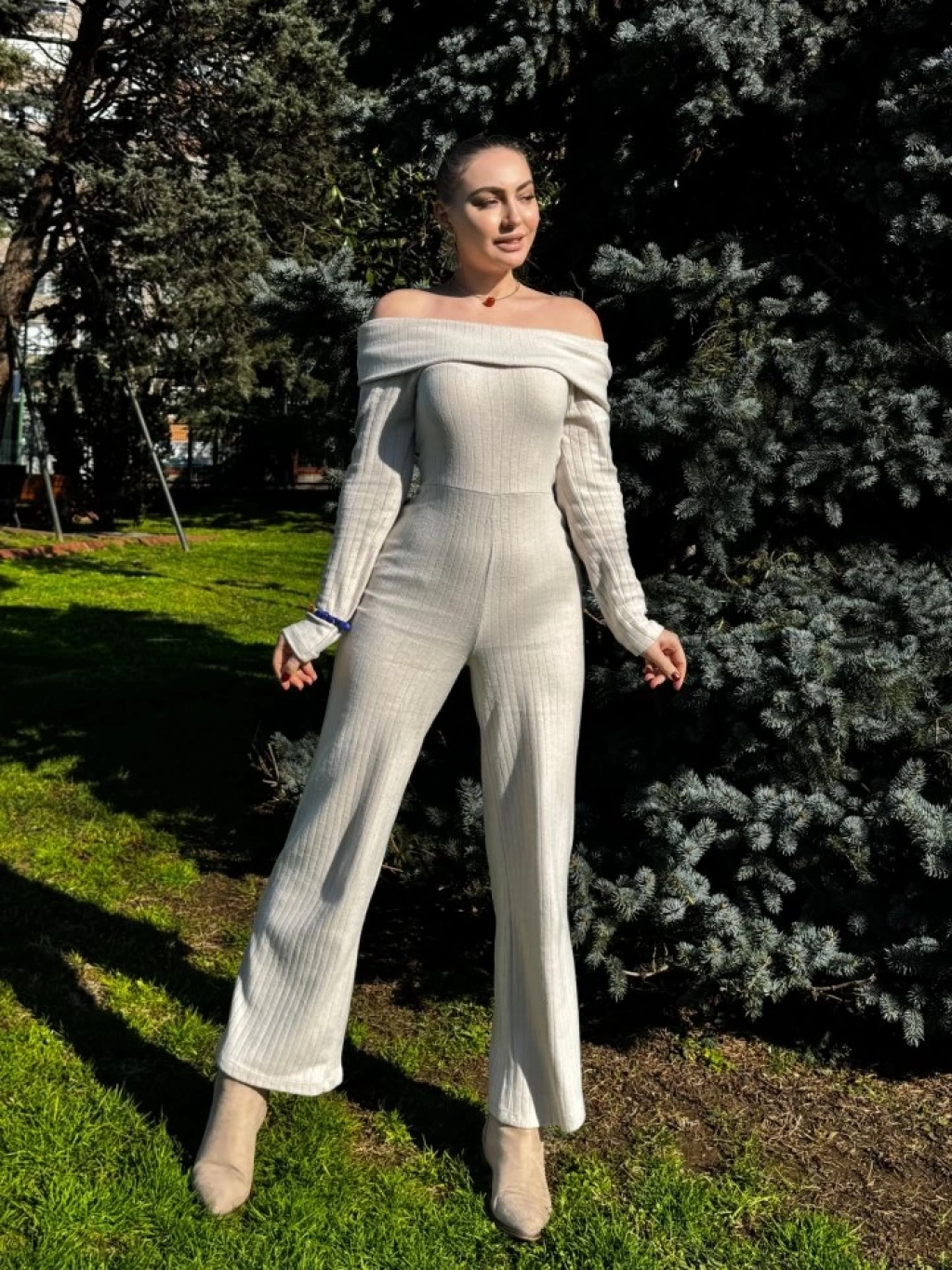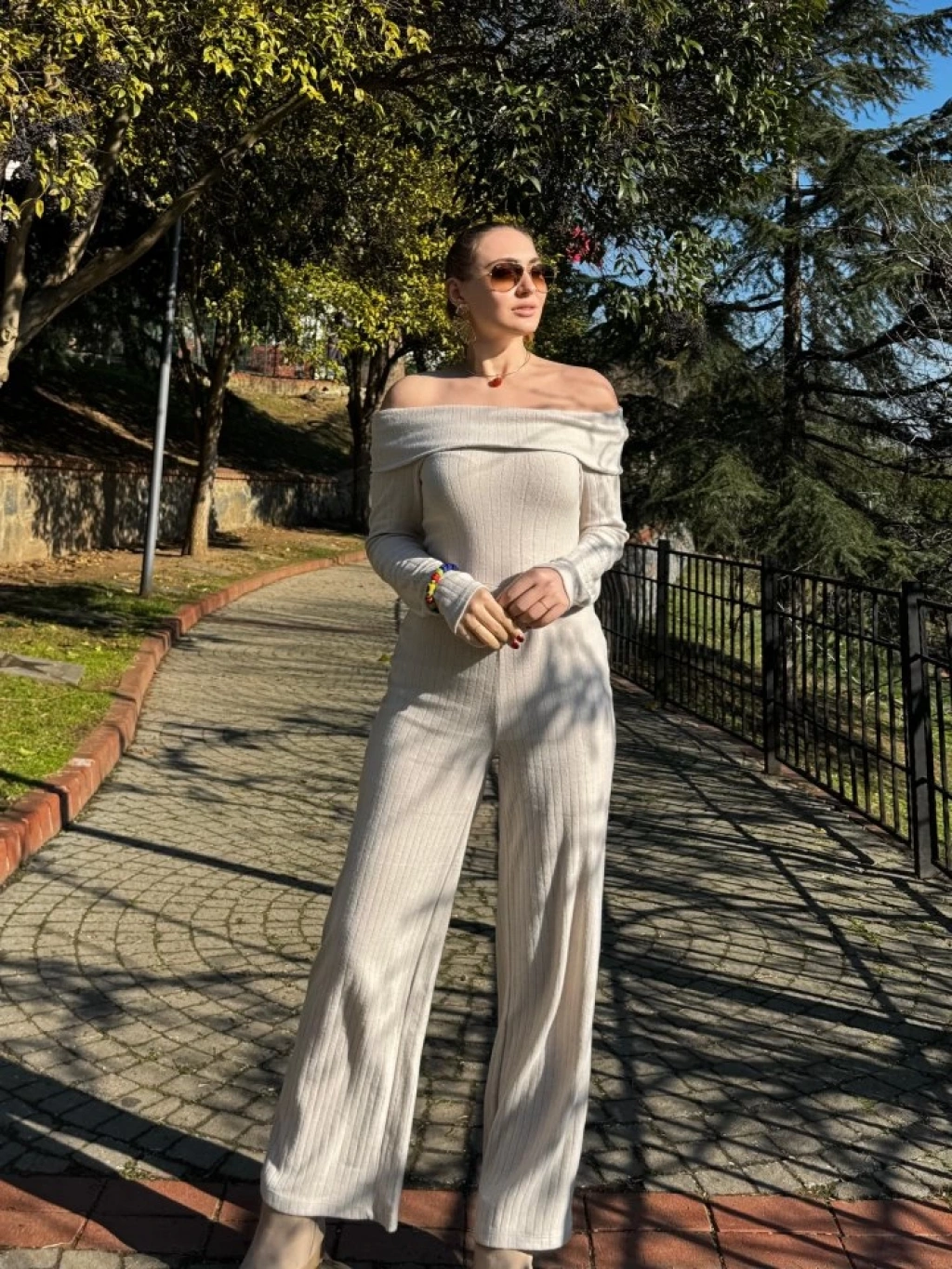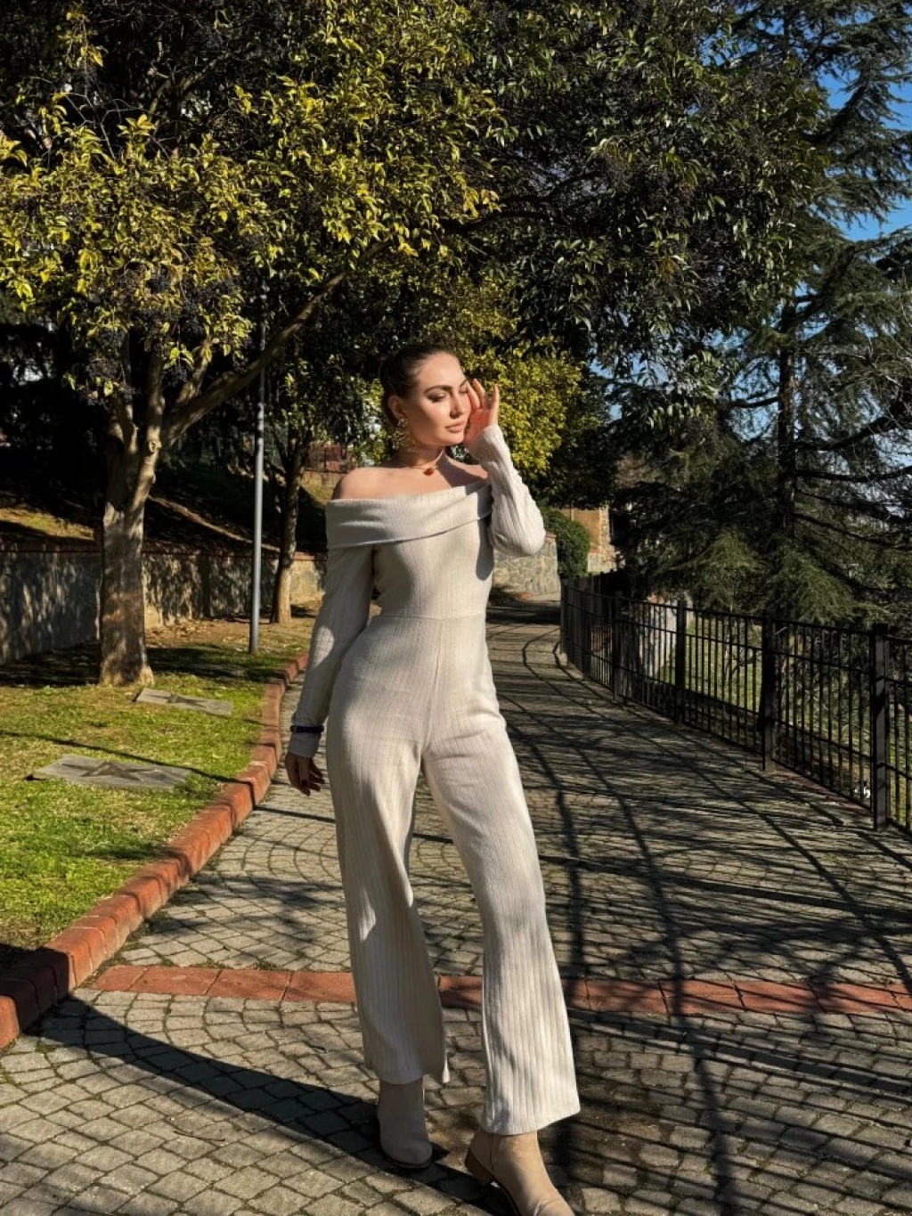 Kadın Uzun Kollu Madonna Yaka şardonlu Kaşkorse Tulum
