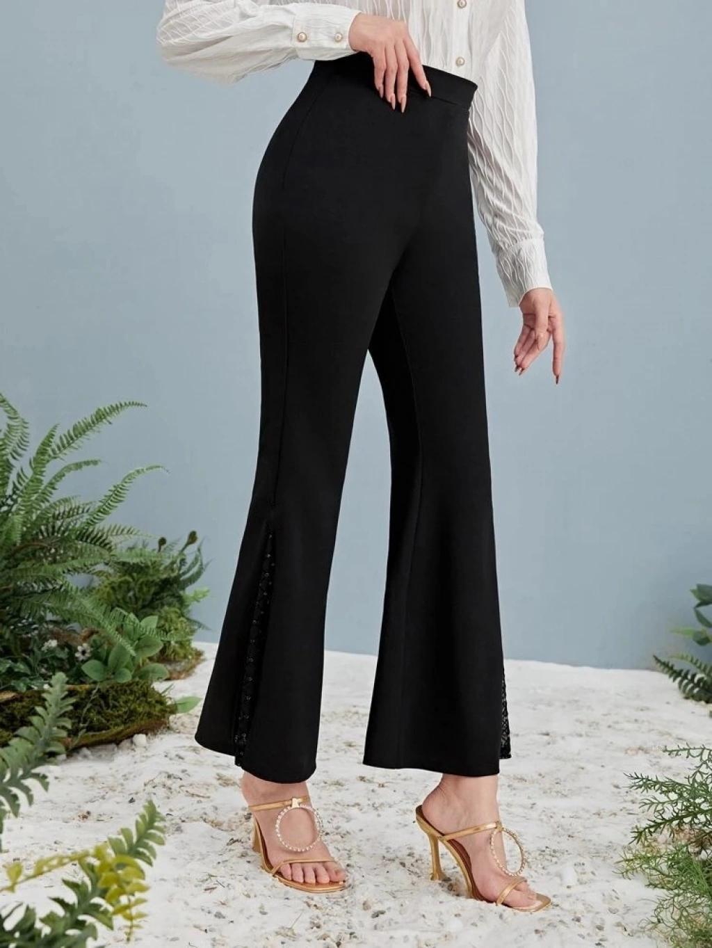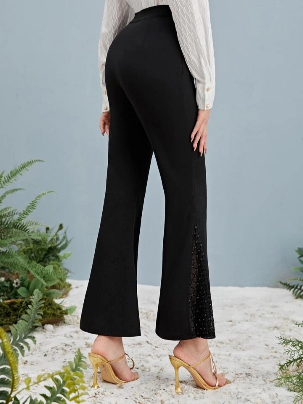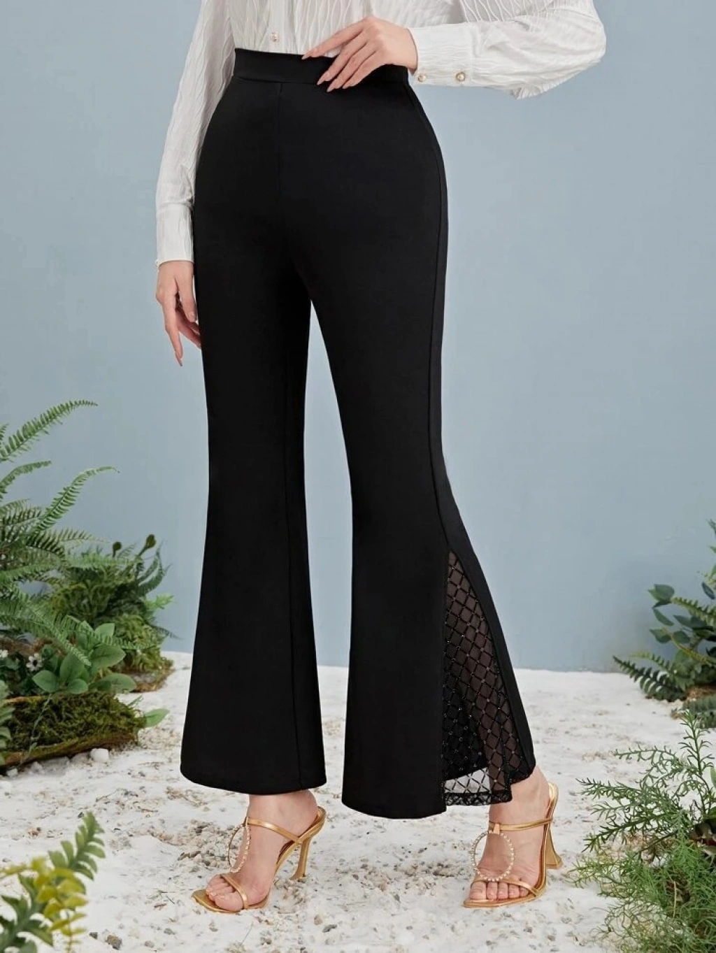 Kadın Yüksek Bel Yanları Tül Detaylı Dalgıç Tayt Pantolon
