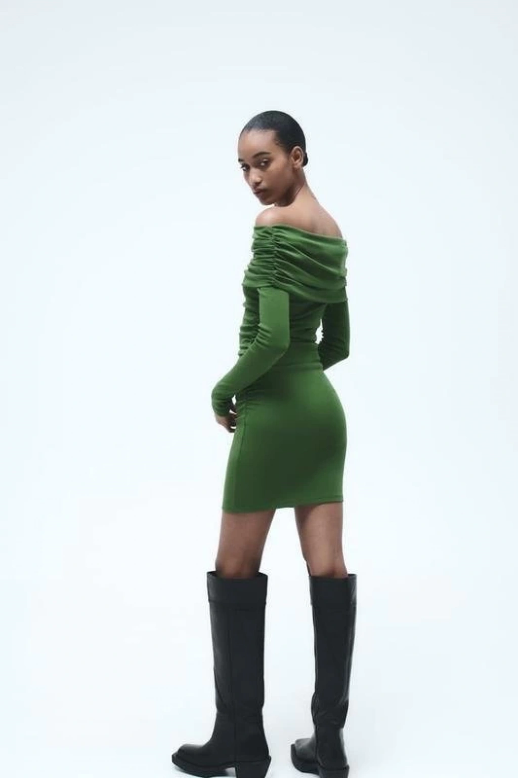 Kadın Madonna Mendil Yaka Fırsat ürün Büzgülü Mini Elbise