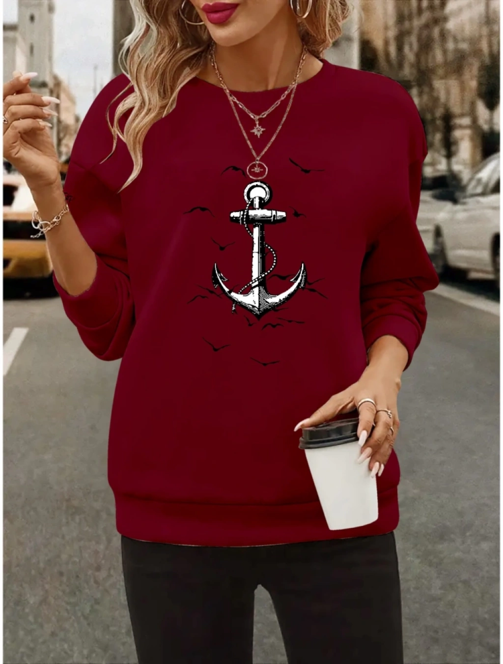 Kadın Uzun Kollu Bisiklet Yaka Desenli Viskon Iki Iplik Bluz