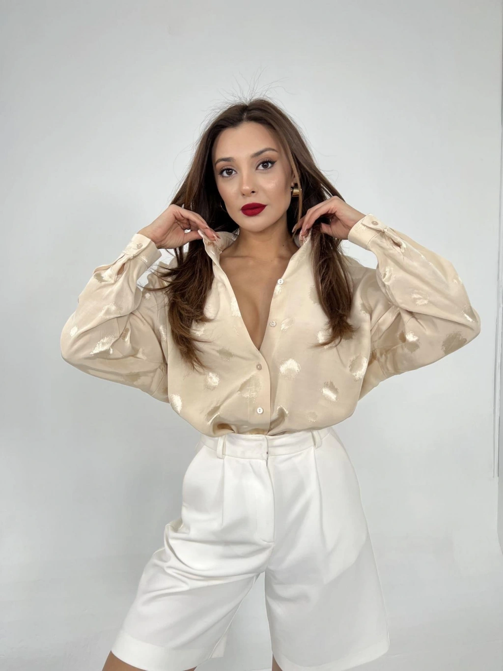 Modelin Ölçüleri: Boy:165, Kg:55, Göğüs:90, Bel:72, Kalça: 100