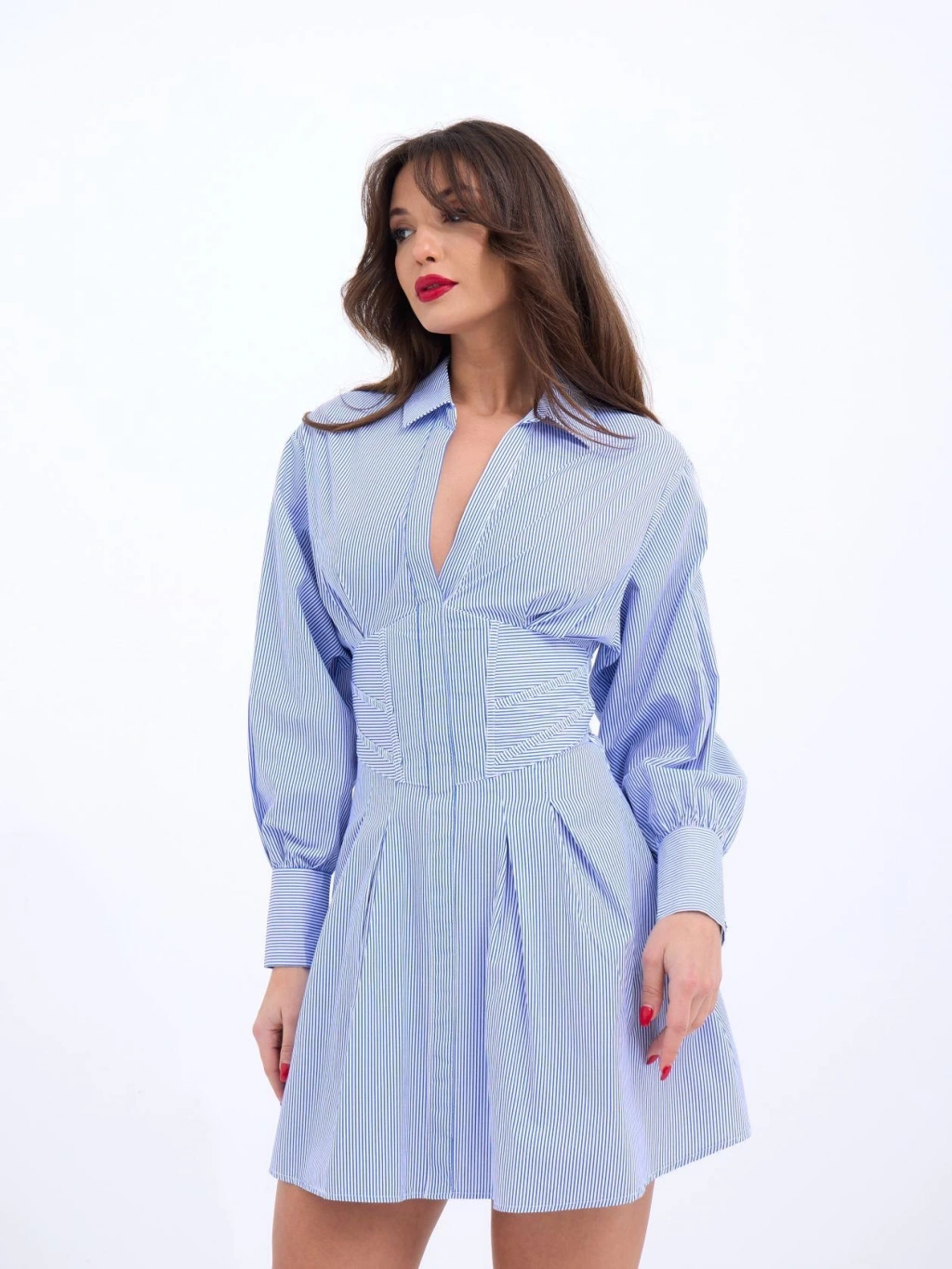 6558 ELBİSE-MAVİ BEYAZ ÇİZGİLİ