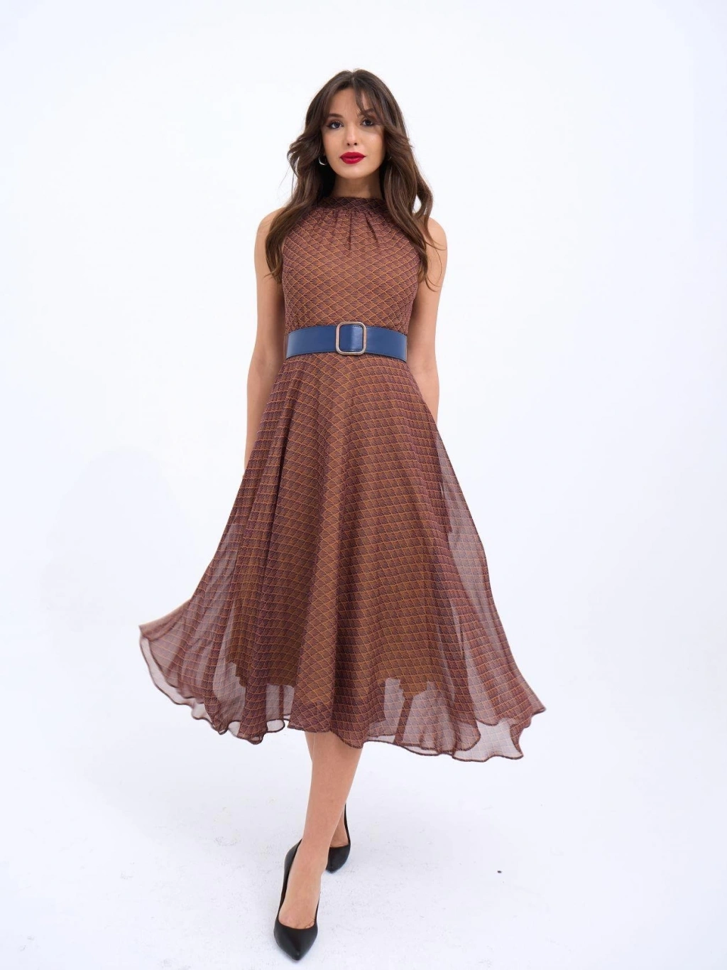 Modelin Ölçüleri: Boy:165, Kg:55, Göğüs:90, Bel:72, Kalça: 100