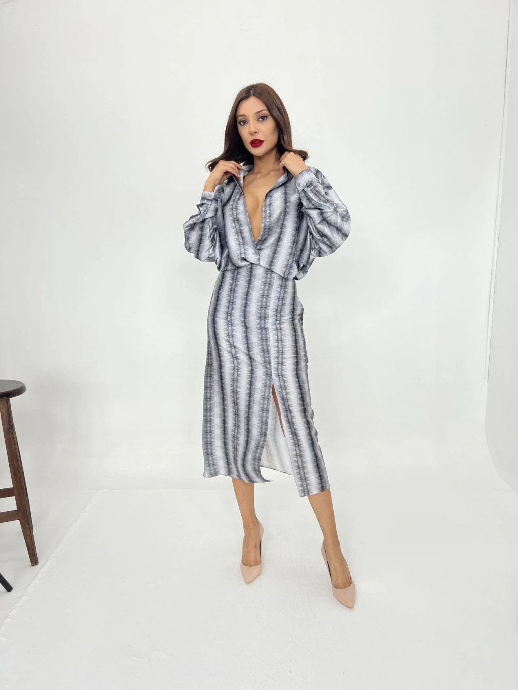 Modelin Ölçüleri: Boy:165, Kg:55, Göğüs:90, Bel:72, Kalça: 100