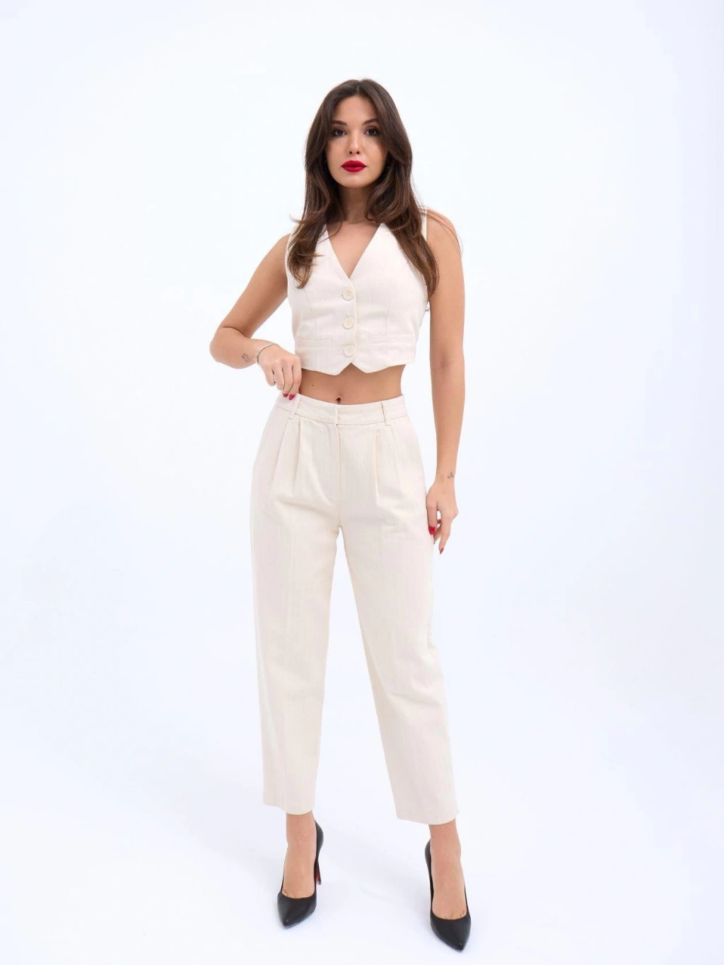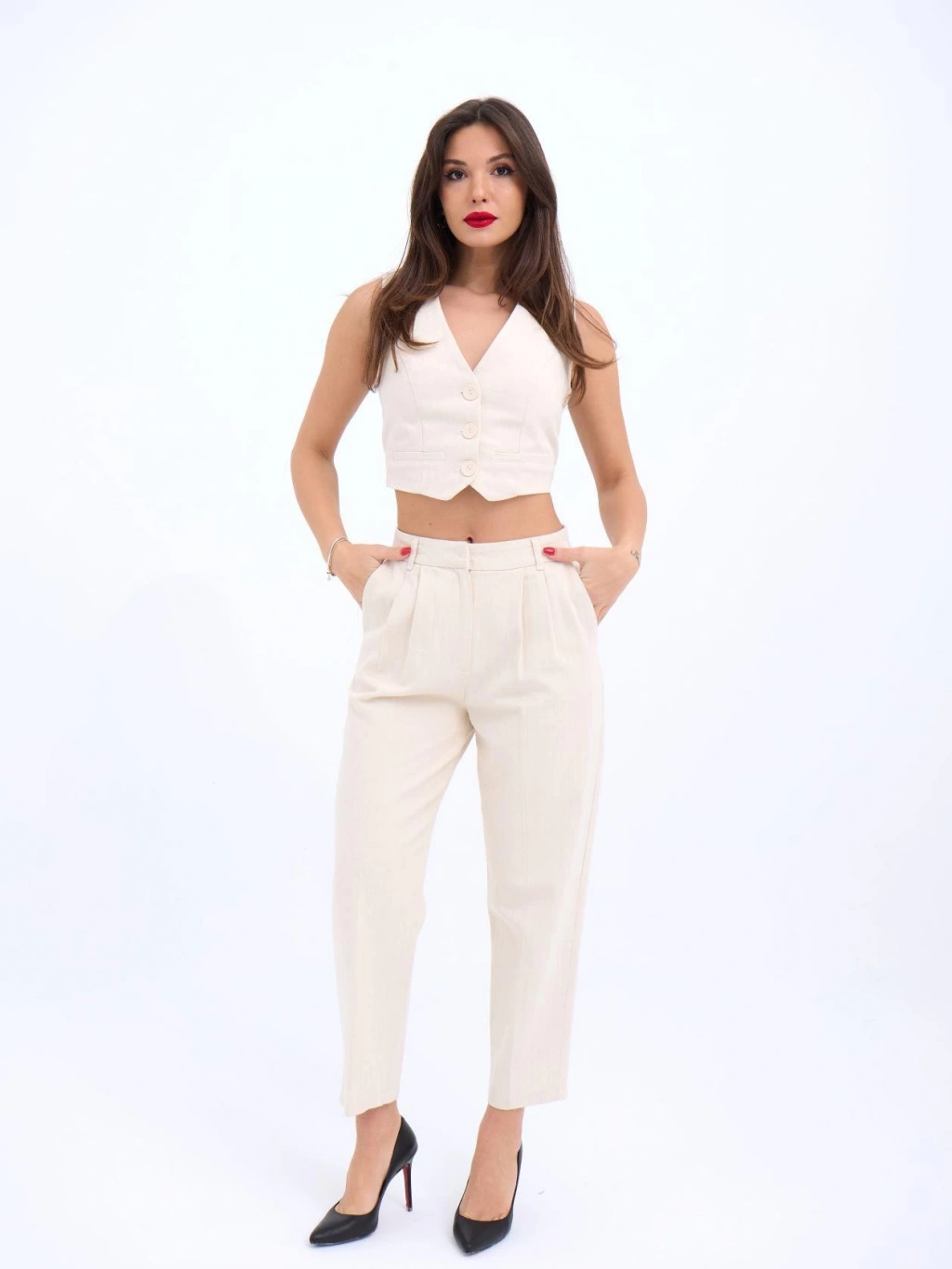 Modelin Ölçüleri: Boy:165, Kg:55, Göğüs:90, Bel:72, Kalça: 100