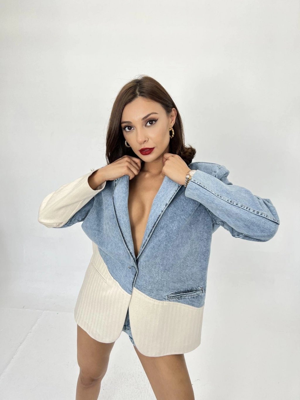 Modelin Ölçüleri: Boy:165, Kg:55, Göğüs:90, Bel:72, Kalça: 100