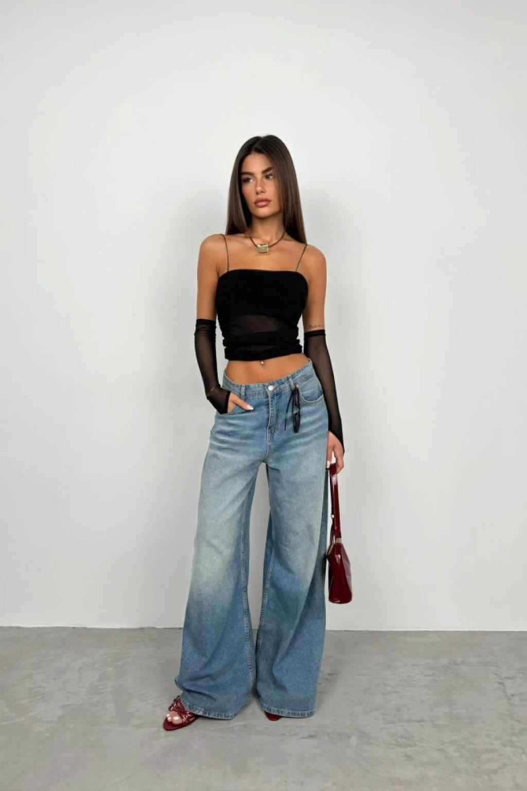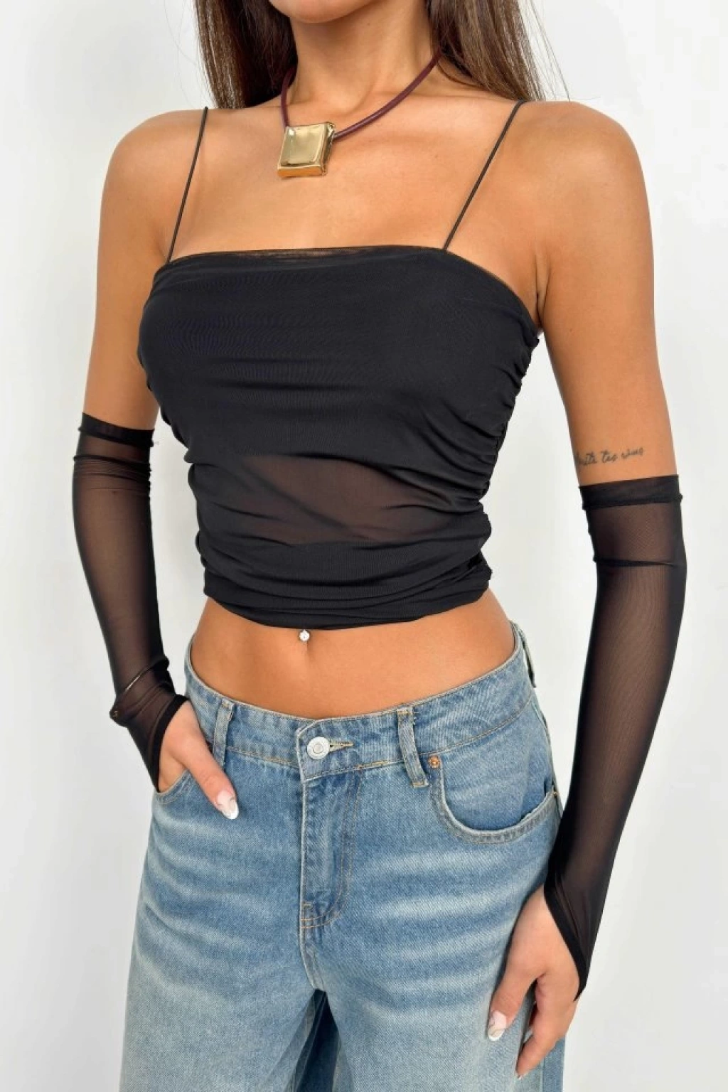 Kolluk Detay Askılı Tül Bluz
