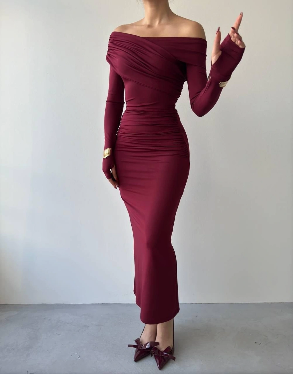 Modelin Ölçüleri: Boy:165, Kg:55, Göğüs:90, Bel:72, Kalça: 100
