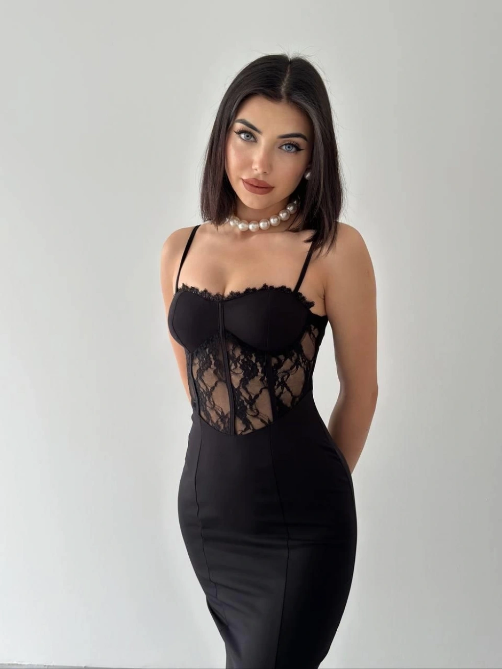 Modelin Ölçüleri: Boy:165, Kg:55, Göğüs:90, Bel:72, Kalça: 100
