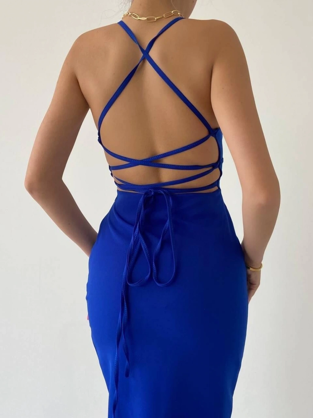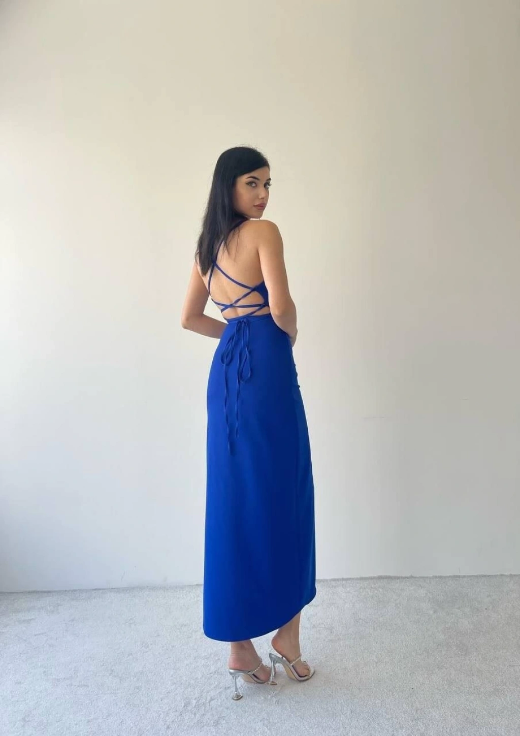 Kaitlyn Sırt Dekolteli V Yaka Yırtmaçlı Elbise